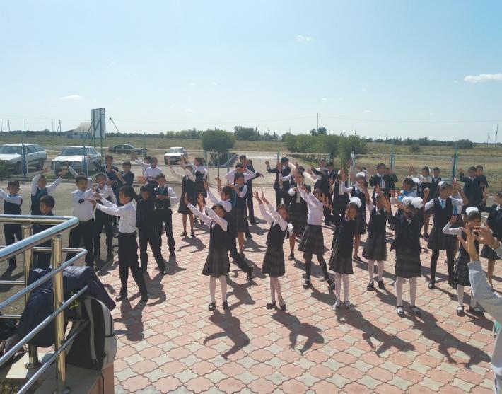 1-4, 5-10 сыныптар арасында «Жол ережесін білейік, аман есен жүрейік» тақырыбында флешмоб ұйымдастырылды.