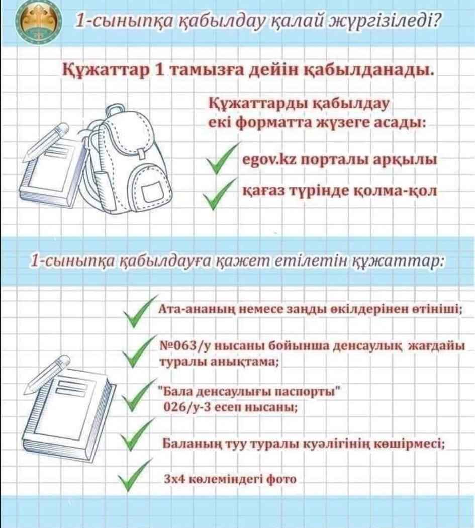 АТА-АНАЛАР НАЗАРЫНА!!! 1 СЫНЫПҚА ҚАБЫЛДАУ ТУРАЛЫ