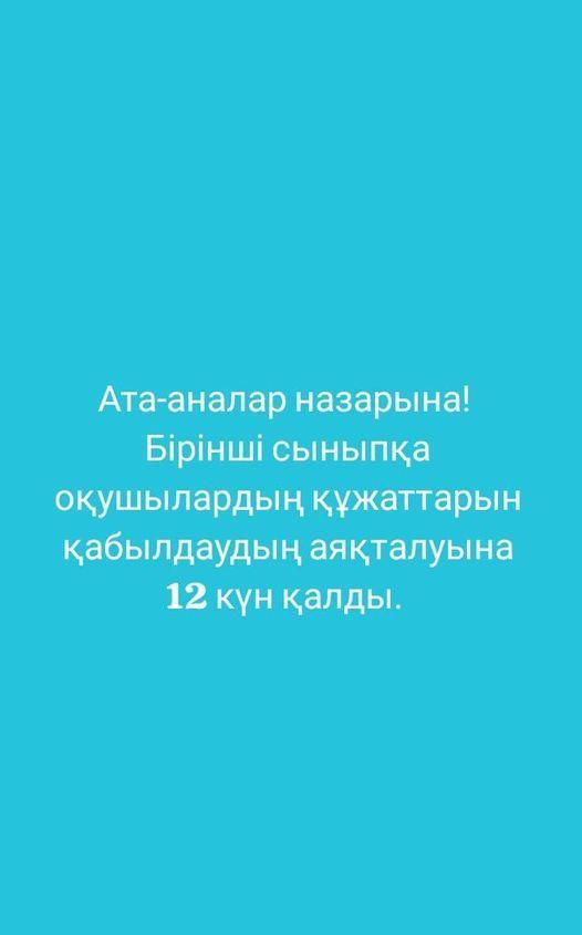 2023-2024 оқу жылына оқушыларды 1 сыныпқа қабылдау 1 сәуірде басталып, 1 тамызда аяқталады.