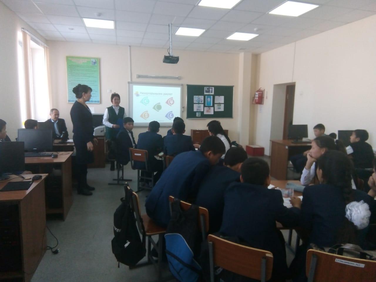 2018 жылдың 15 қараша күні Ә.Молдағұлова атындағы шағын орталықты орта мектебінде мектеп кітапханашысы Б.Молдахунованың ұйымдастыруымен Ұлттық валютамыз Теңгенің-25 жылдығына байланысты 8-9 сыныптар арасында "Ұлттық теңге мақтанышымыз" атты тәрбие сағатын өткізді. Тәрбие сағатында теңгенің шығу тарихы жайында бейнеролик, слайд көрсетілді. Теңге туралы оқушыларға сұрақтар қойылып, жауаптар алынды. Тәрбие сағат соңында БББ кестесі бойынша оқушылар өз түсінгендерін кестеге жазып, пікір қалдырды.