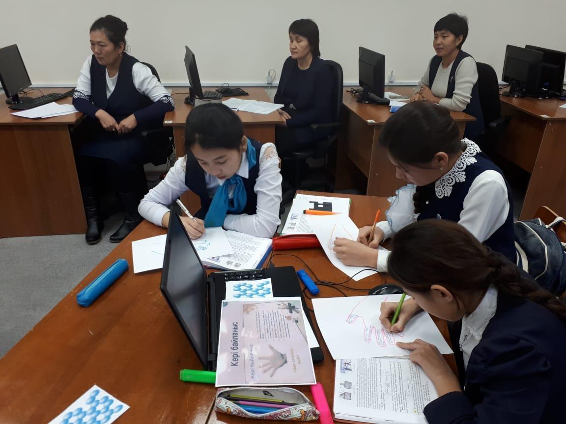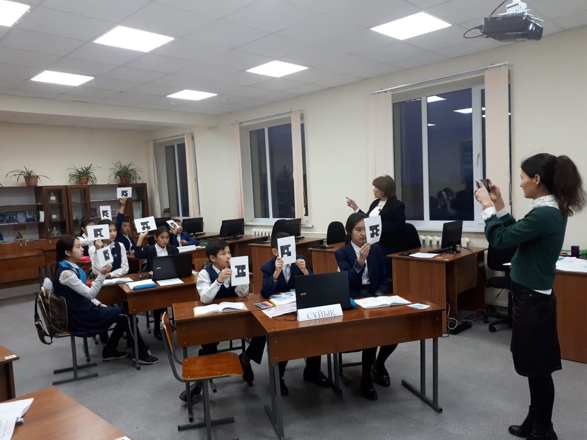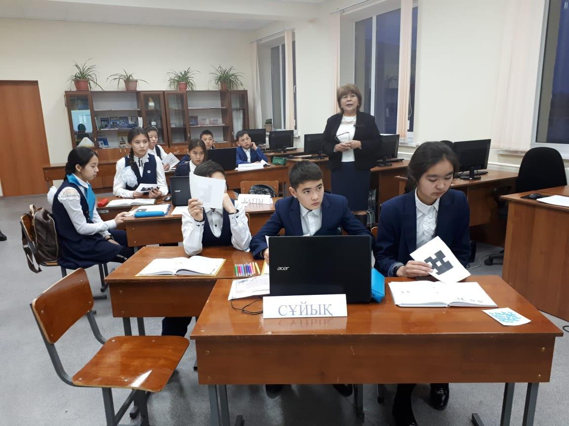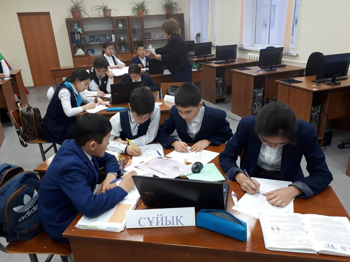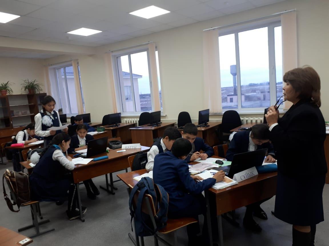 Әлия Молдағұлова атындағы шағын орталықты орта мектебінде «Бүкіл әлем сөйлейді, нақты ғылым тілінде» математика, информатика, физика пәндерінің он күндігіне байланысты физика пәні мұғалімі Бабасова Калдыкуль Мухтарханқызы 7 сынып оқушыларымен «Қатты денелердегі қысымға есептер шығару» тақырыбында сабақ өткізді. Мұғалім оқушылардан «Pliсkers» бағдарламасында құрастырылған тест сұрақтары арқылы үй тапсырмасын тексерді. Сабақ өтілу барысында топпен жұмысты Bilimland.kz порталындағы жаттығуларды орындап есептер шығарды.