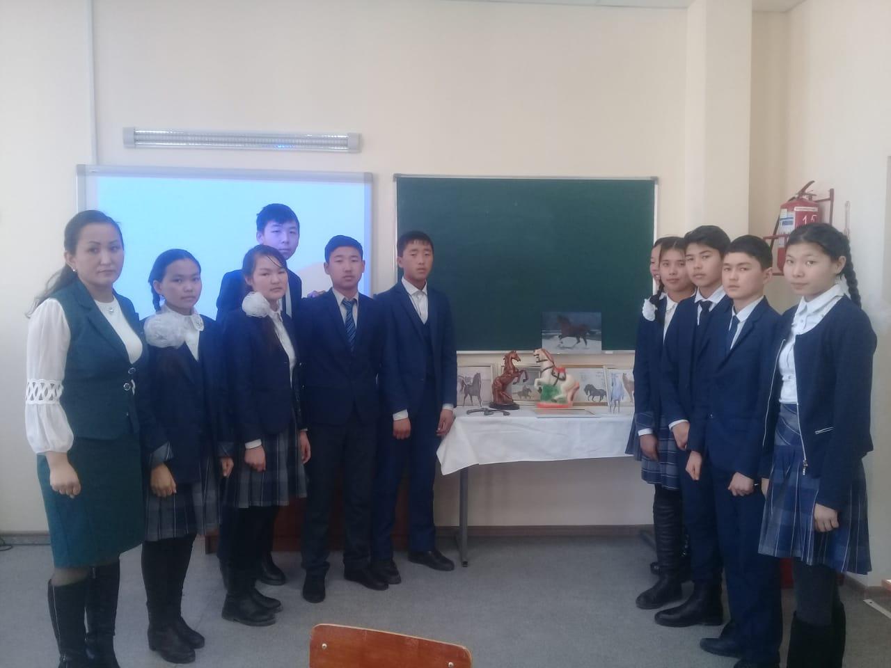2019 жылдың 25 қаңтар күні Ә.Молдағұлова атындағы шағын орталықты орта мектебінде Қазақстан Республикасының Тұңғыш Президенті Нұрсұлтан Әбішұлы Назарбаевтың 2017 жылы сәуір айында жарық көрген «Болашаққа бағдар: рухани жаңғыру» атты бағдарламалық мақаласының жалғасы болып табылатын «Ұлы даланың жеті қыры» атты мақаласын насихаттау мақсатында 9- сынып оқушыларымен сынып жетекшісі Жылқыбаева Бота «Ұлы даладан таныған дүние-атқа міну мәдениеті» тақырыбында ашық тәрбие сағатын өткізді. Оқушылар сабақ барысында топқа бөлініп, «атқа міну мәдениеті» туралы эсселерін оқыды. Сабақ барысында атқа міну туралы бейнетаспа көрсетіліп, оқушылар өз ойларын айтып қорғады. «Start finish» ойыны арқылы оқушылар ат әбзелдерін түсіндіріп айтып шықты. Сабақ соңында оқушылар «көршіңе пікір айтыңыз» кері байланысы арқылы өз ойларын айтты. Тәрбие сағатының соңы мектеп ауласында оқушыларға және ұстаздарға практикалық жүзінде атқа міну мәдениетін, ат әбзелдерін көрсетіп түсіндірді.