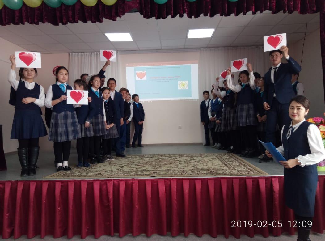 Əлия Молдағұлова атындағы шағын орталықты орта мектебінде психологиялық кеңес беру айлығының ашылу салтанатына 6-7- 10 сынып оқушылар арасында " Мейірімді жүрек- жылы тілек" деген тақырыпта мектеп психологы: Г.Жауғашеваның ұйымдастыруымен флешмоб