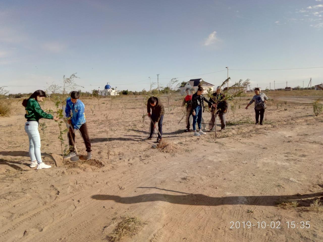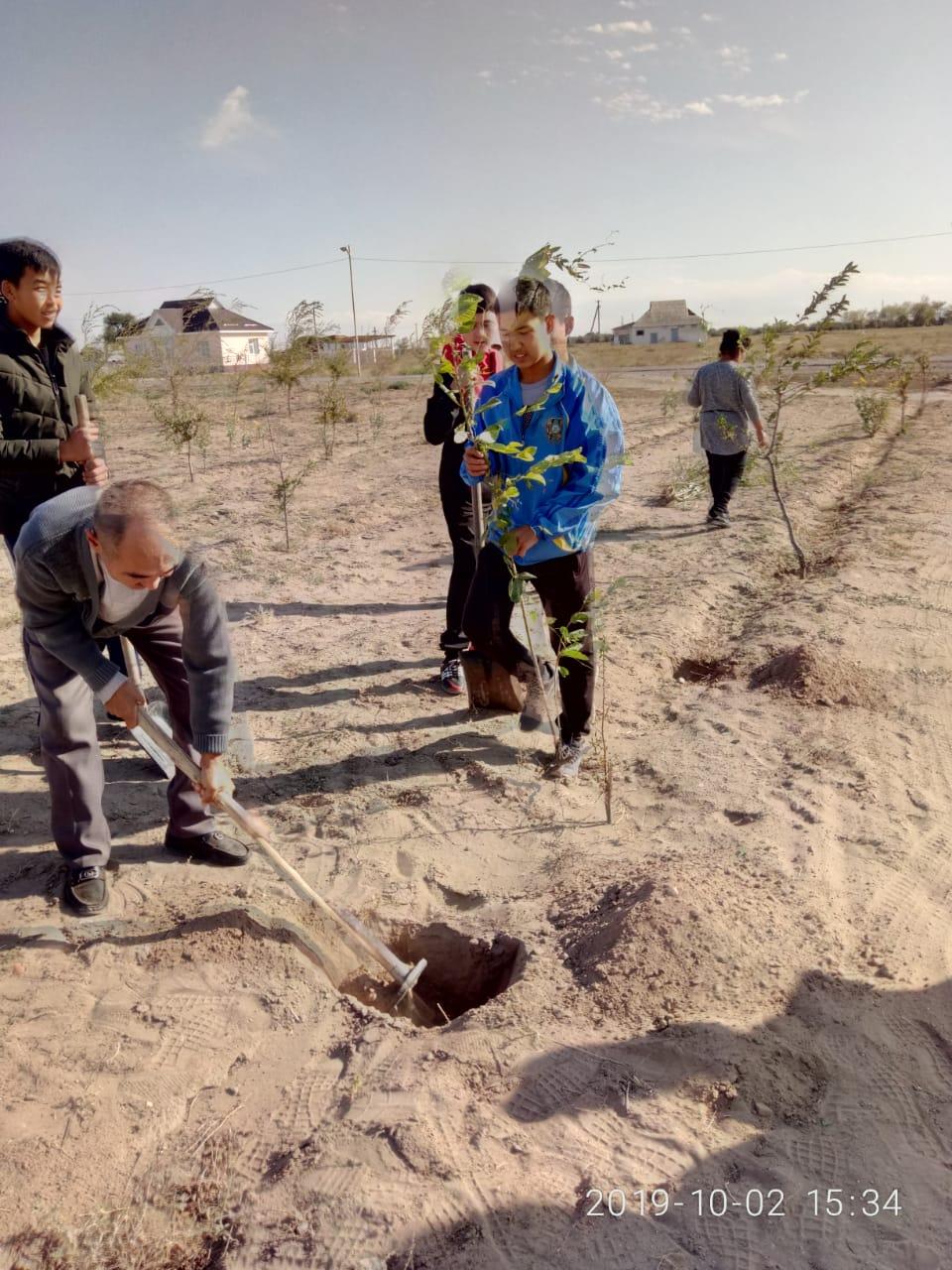2019 жылдың 3 қазан күні Әлия Молдағұлова атындағы шағын орталықты орта мектебінде 'Экологиялық сағат" акциясы өткізіліп ,мектеп оқушылары 20 түп қара ағаштарының көшеттерін отырғызып, республикалық акцияға белсене қатысты. Іс-шараның мақсаты мектеп оқушылары арасында экологиялық мәдениетке,тазалыққа, табиғатты аялауға тәрбиелеу жұмыстарын жандандыру. Акция барысында 1-9 сыныптар арасында "Жердің температурасы бар", 3-11 сынып оқушылары арасында «Мұхиттардың қауіпті жағдайы», «Егер Жер алма болса» тақырыбында бастауыш сыныптар арасында экосағат өтті.