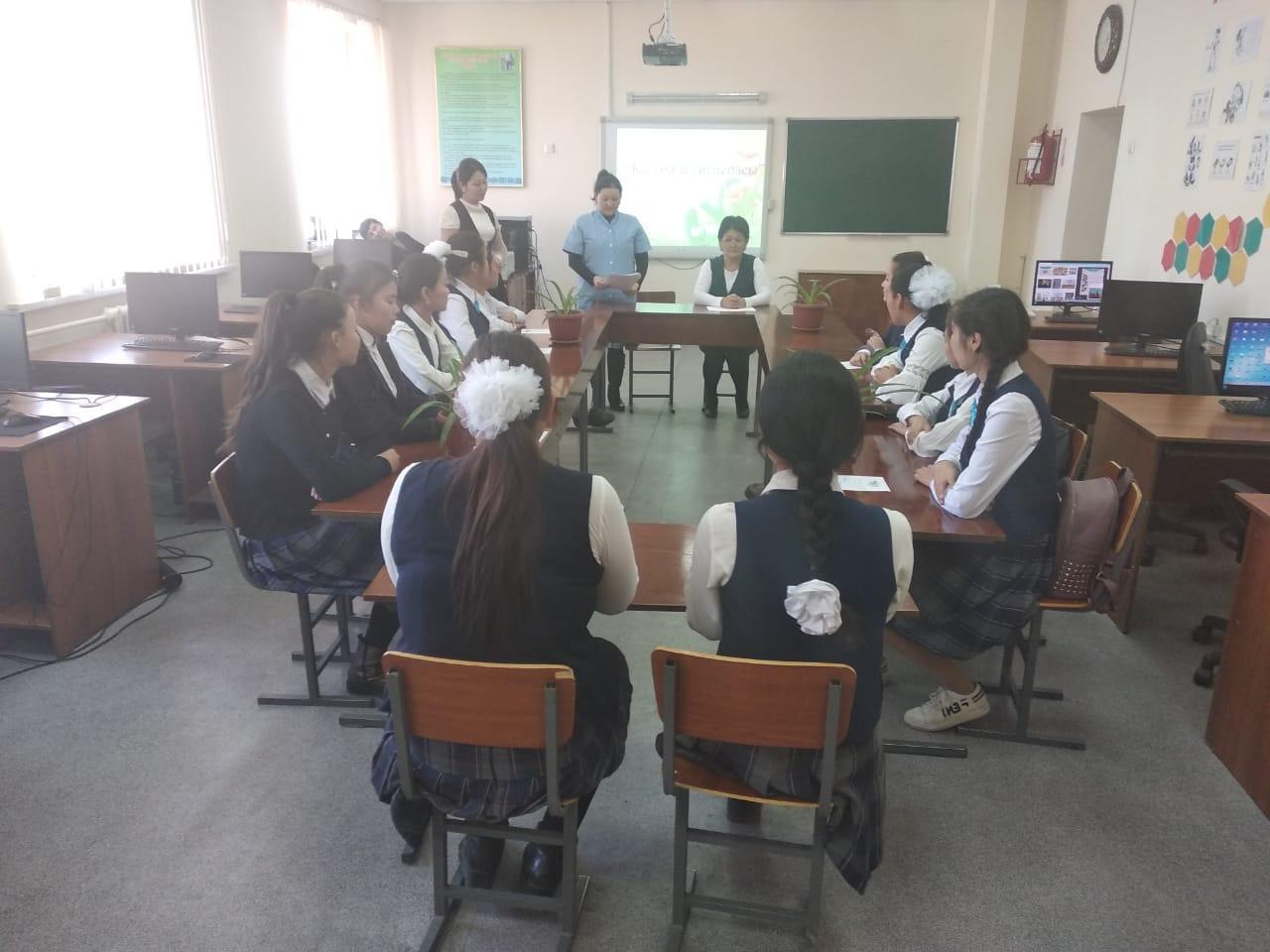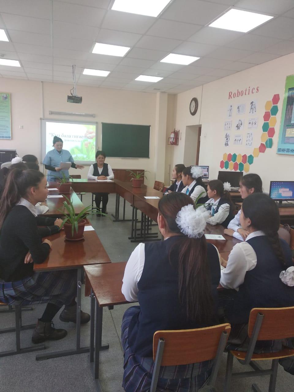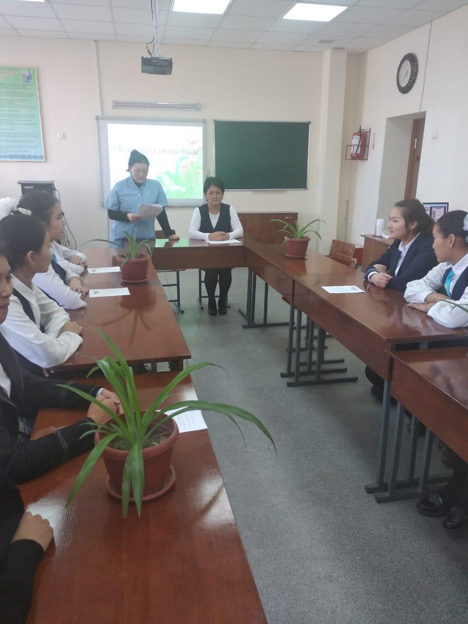 19 қараша 2019 0 1 2 3 4 5 "Қыз бала гигиенасы, Репредуктивті денсаулық" 2019 жылдың 19 қараша күні Әлия Молдағұлова атындағы шағын орталықты орта мектебінде "Қыз бала гигиенасы, Репредуктивті денсаулық" тақырыбында 8- 11-сыныптар арасында дөңгелек үстел өткізілді.