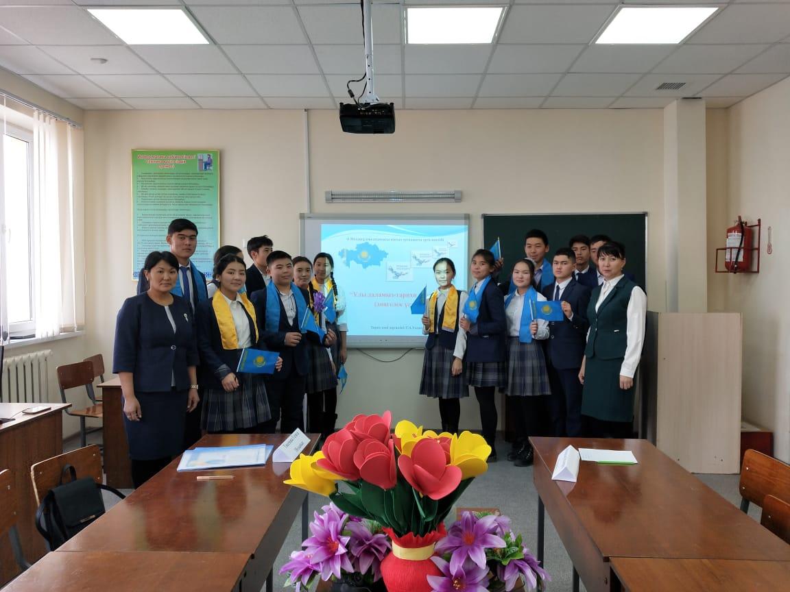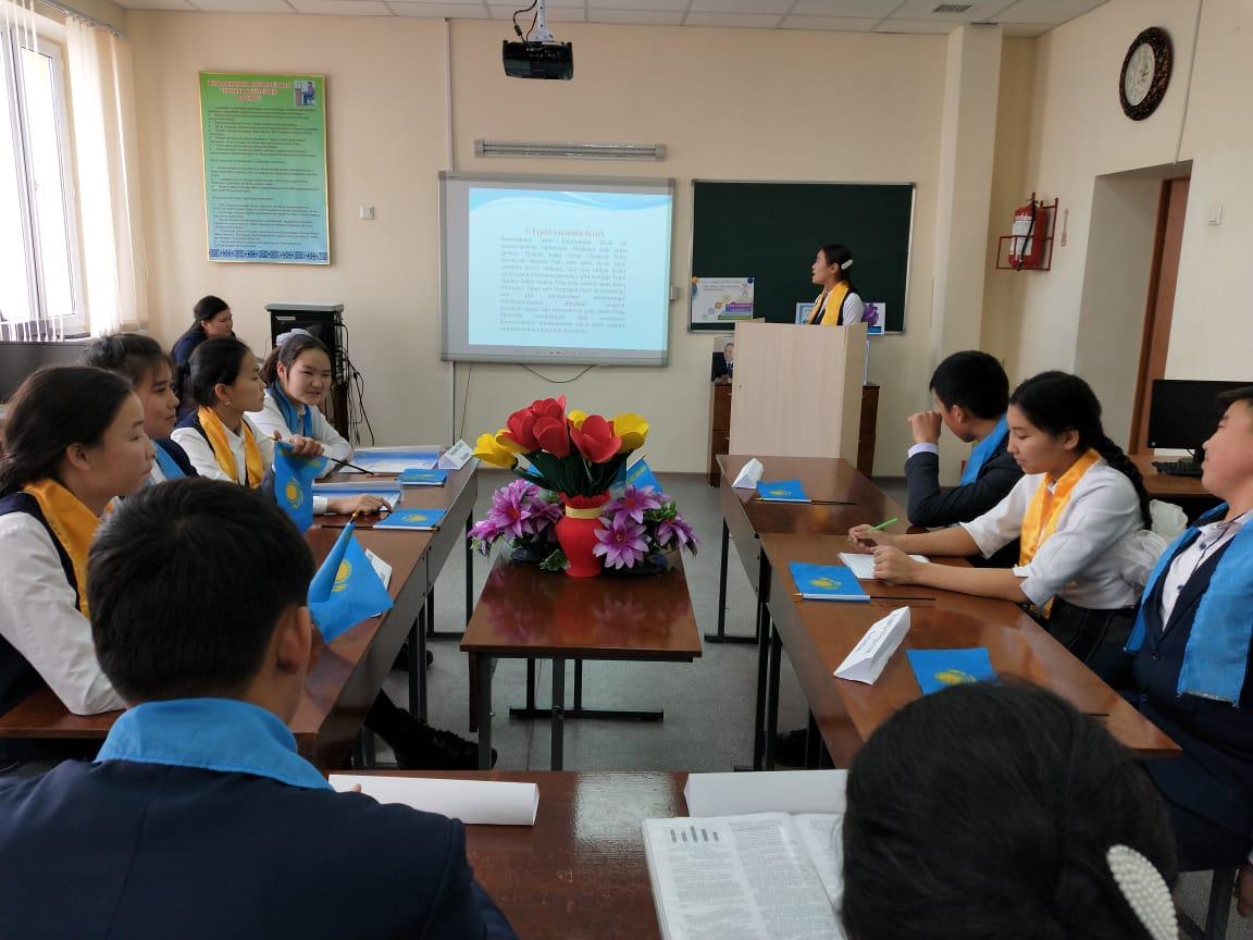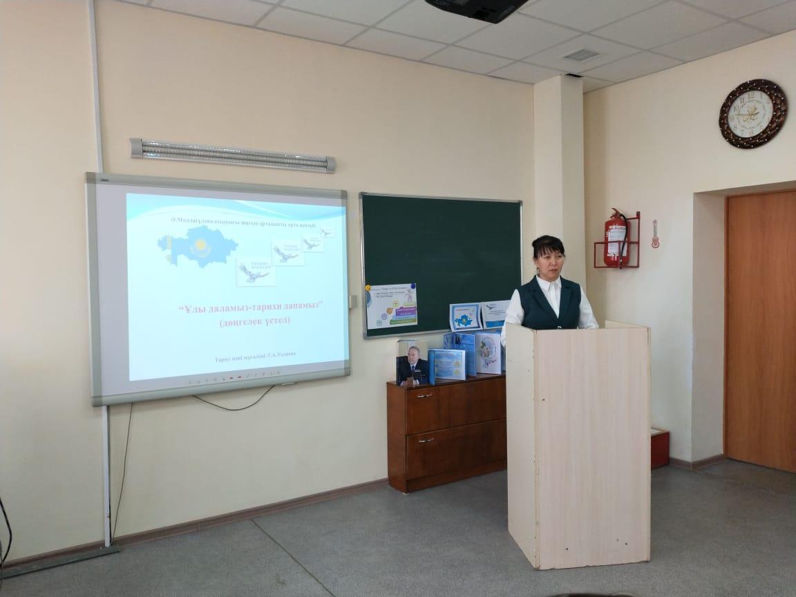 Әлия Молдағұлова атындағы шағын орталықты орта мектебінде 9-10 сынып оқушыларының қатысуымен "Ұлы даламыз-тарихи данамыз" атты дөңгелек үстел өткізілді. Мақсаты: жас ұрпақтың бойына, еліне,жеріне деген сүйіспеншілік сезімін ояту, егемен елдің құндылықтарын бағалауға үйрету.