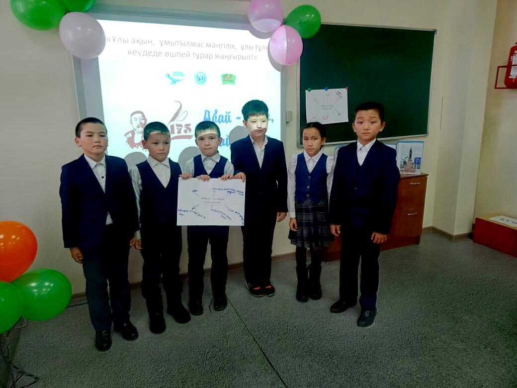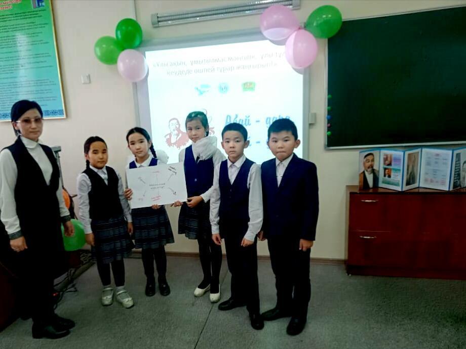 2020 жылдың 24 қаңтар күні Әлия Молдағұлова атындағы шағын орталықты орта мектебінде А.Құнанбаевтың 175 жылдығына орай 3-сынып оқушыларымен «Ұлы ақын, ұмытылмас мәңгілік, ұлы тұлға кеудеде өшпей тұрар жаңғырып!» тақырыбында тәрбие сағаты өткізілді.