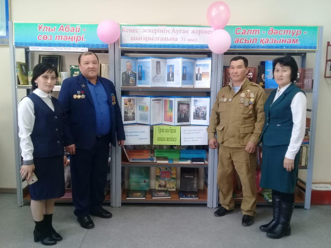 Әлия Молдағұлова атындағы шағын орталықты орта мектебінде «Кеңес әскерлерінің Ауғанстан жерінен шығарылғанына 31 жыл толуына орай жастарды отансүйгіштікке тәрбиелеу мақсатында мектепте «Ауғанстан ақиқаты» тақырыбында дөңгелек үстел өткізілді.