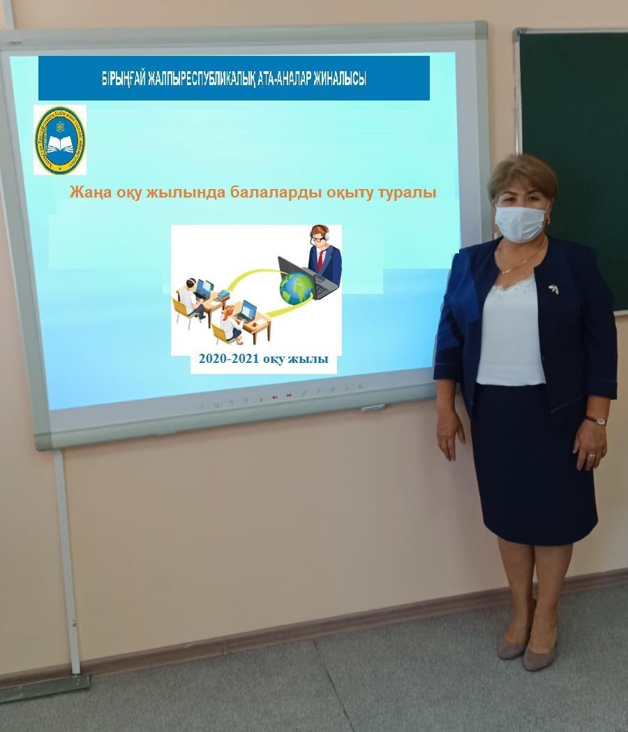 2020 жылдың 20 тамыз күні Әлия Молдағұлова атындағы шағын орталықты орта мектебінде санитарлық талаптарды сақтай отырып Бірыңғай республикалық ата аналар жиналысы өтті.