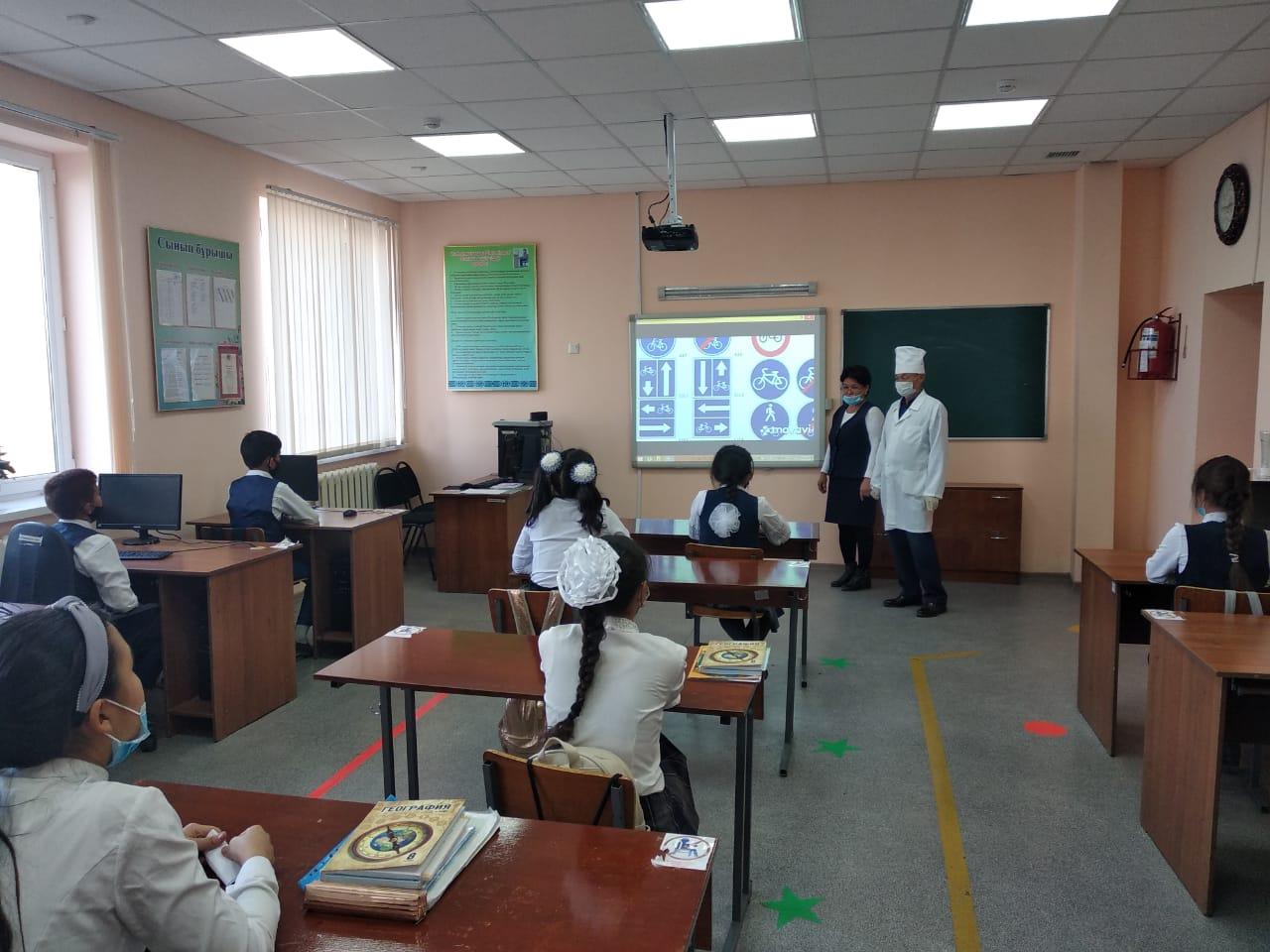 Балалардың есірткі құралдарын тарату мен пайдалануға қатысу деректерінің алдын алуға және жолын кесуге бағытталғын, сондай-ақ белгісіз тұлғалардан кондитерлік тағамдар мен сағыз өнімдерін сатып алуға жол бермеуді түсіндіре отырып, 5-11 оқушыларына сынып сағаттары өткізілді.Барлық сыныптарда «Жол ережесін сақта», «Өрт – тілсіз жау», «Суда шомылуда абай бол», «Нашақорлық және құқық бұзушылық» тақырыбында қауіпсіздік сабақтары жүргізілді.1 – 4 сыныптар арасында «Жол ережесін білесің бе?» тақырыбында сурет байқауы ұйымдастырылды. «WhatsApp» желісі арқылы жалған ақпараттарды тарату Қазақстан Республикасының Қылмыстық Кодексінің 274 бабына сәйкес қылмыстық жауапкершілікке әкеліп соғатындығы жөнінде ДТІЖ орынбасары Ш.С.Илкибаева және мектеп инспекторы Қ.Р.Адашов ата-аналар мен оқушылар және арасында түсіндіру жұмыстарын жүргізді.1-11 сынып оқушыларына сынып сағаттары өткізілді.Балалардың қауіпсіздігіне сақталу жағдайына күнбе-күн талдау жүргізіледі, құқық бұзушылықтын алдын алу кеңесі ай сайын жүргізіледі..Балалардың психологиялық қауіпсіздігін қамтамасыз ету мақсатында мектеп психологі Г.Т.Жауғашева сауалнама жүргізіп, психологиялық диагностикалау нәтижесіне талдау жұмыстарын жүргізеді.Мектеп инспекторы Қ.Р.Адашов бейнебақылау камераларына түскен бейнематериалдарды аптасына қарап , нәтижесін шығарып отырады. Балалардың қауіпсіздігі мәселелері бойынша ата-аналар жиналысы уақытылы өткізіліп отырады.Оқушылар арасында «Баланың қауіпсіздігі сақтала ма?» атты арнайы сауалнамалар жүргізілді. Мектебімізде «Бала қауіпсіздігінің ережелері» тақырыбында ақпараттық стендтер мен парақшалар ілулі. БҰҰ Балалар қорының (ЮНИСЕФ) Мектептердегі зорлық-зомбылықтың алдын алу және оған орай әрекет ету бағдарламасын іске асыру бойынша нұсқаулыққа сәйкес мектептерде «Мектептің қауіпсіздік командасы» құрылып, жұмыс өз дәрежесінде жүргізілуде.Мектеп медағасы С.Хасенов оқушыларға жеке бас гигиенасы және сақтық шаралары туралы кеңестер беріп отырады.Оқушыларға арнайы дайындалған жол ережесі,вирустан қорғану туралы бейнероликтер көрсетілді.