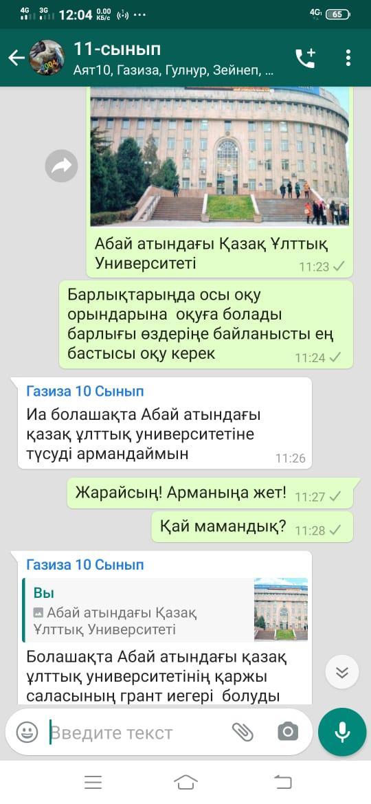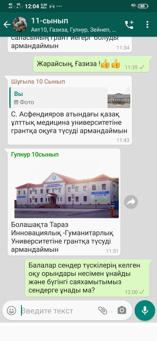 Әлия Молдағұлова атындағы шағын орталықты орта мектебінде "Қазақстан балалары -интерактив!" 2020-2021 оқу жылында күзгі каникул кезінде балалардың демалысын, бос уақытын және жұмыспен қамтылуын ұйымдастыру бойынша іс-шаралар жоспарына сәйкес 2020 жылдың 9 қараша күні 11 сынып оқушыларына "Мамандықтар әлемін ашамыз" атты "Қазақстан университетіне виртуалды саяхат" ұйымдастырылды.