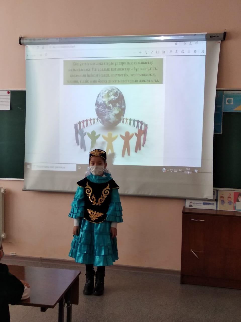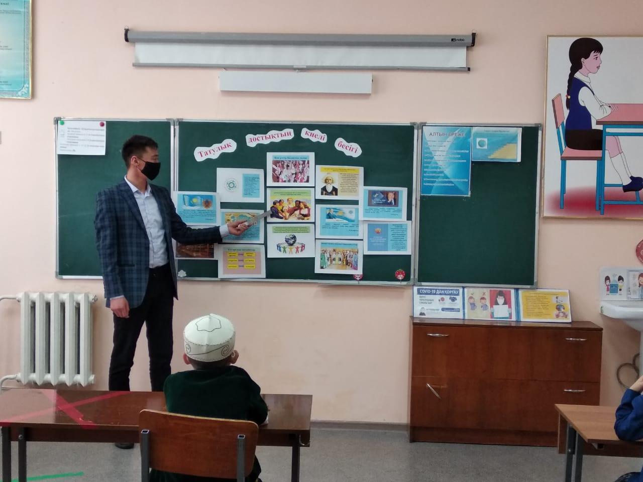 Әлия Молдағұлова атындағы орта мектебінде Қазақстан Республикасының Тәуелсіздігінің 30 жылдығына орай,Қазақстан Республикасындағы халықтардың ынтымықтастықпен,бірлікпен,татулықпен өмір сүріп жатқандығын үлгі ету мақсатында 2 сынып жетекшісі А.Әбдіқадыр «Татулық достықтың киелі бесігі» тақырыбында сынып сағатын өткізді.