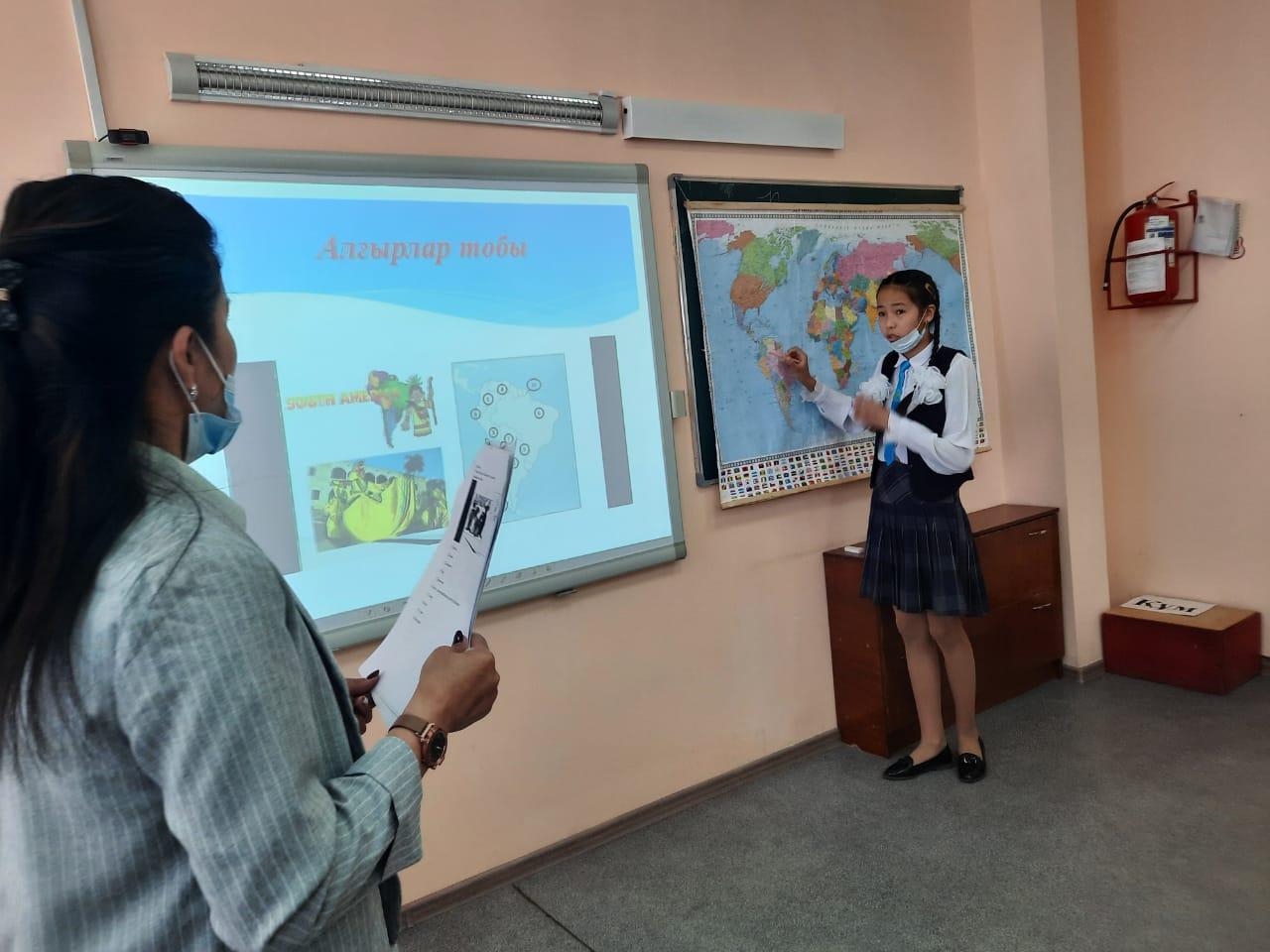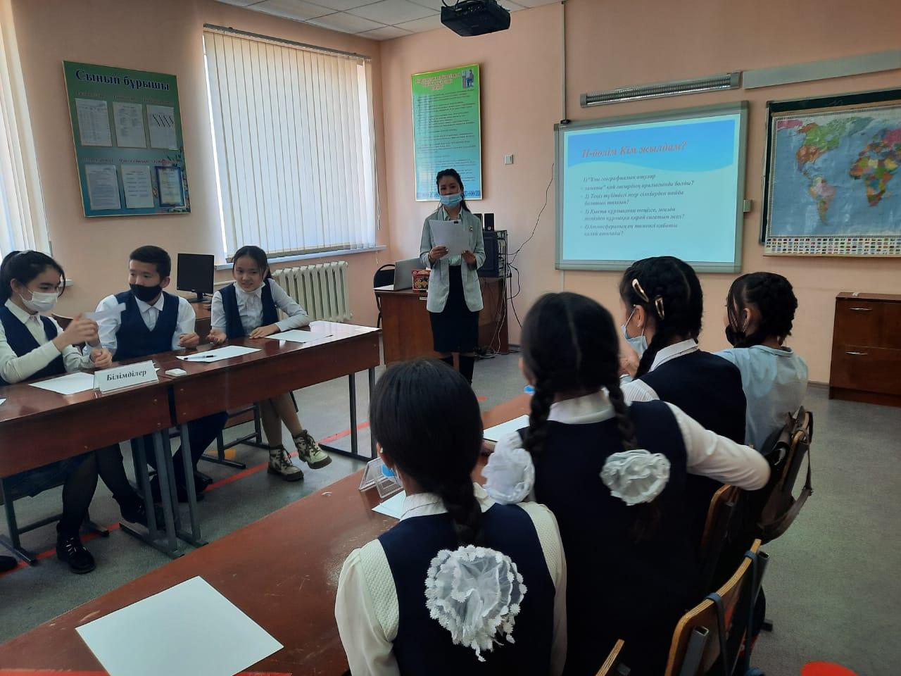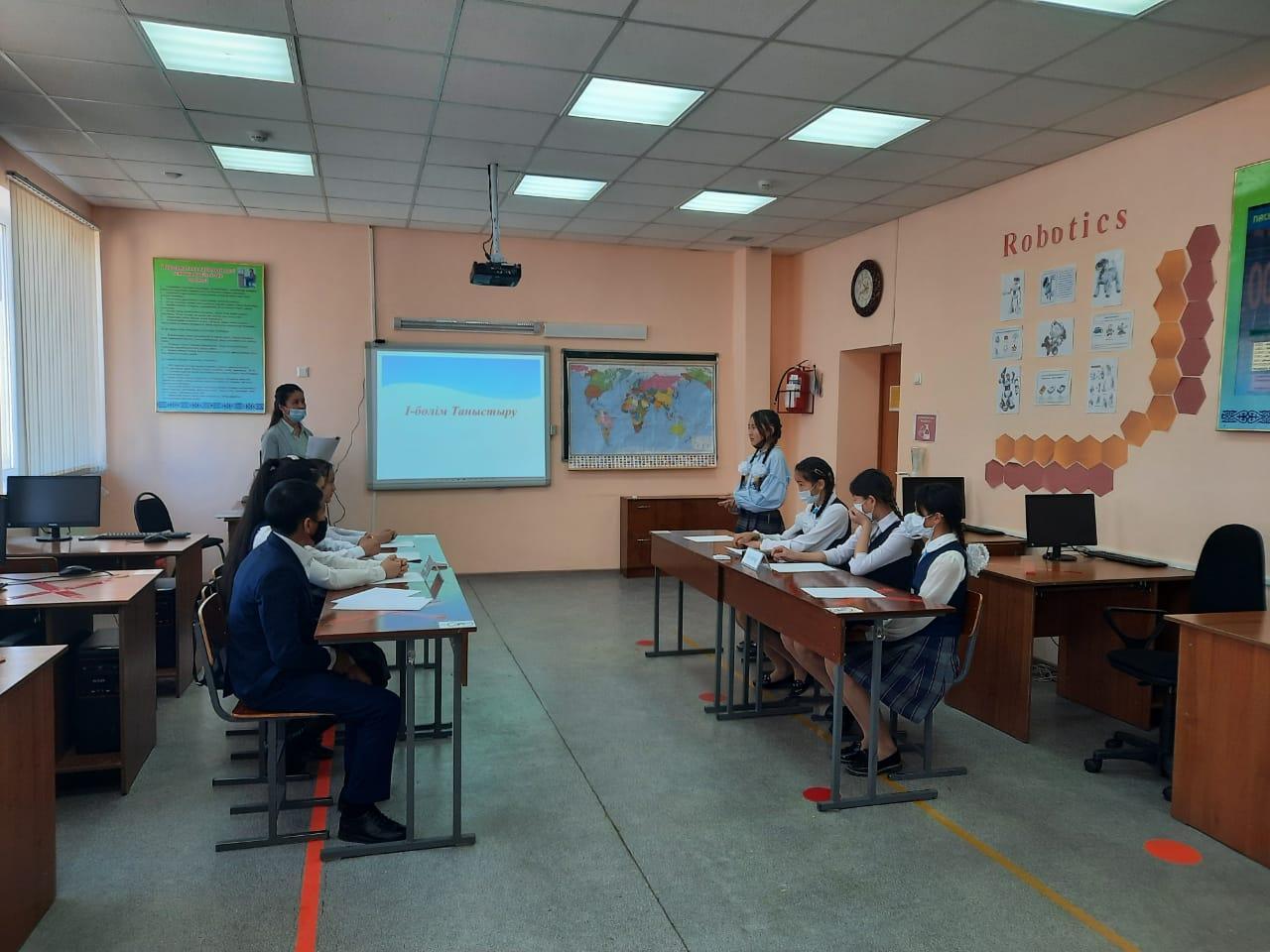 Ә.Молдағұлова атындағы орта мектебінде "Биология, химия, география" айлығы барысында санитарлық талаптарды сақтай отырып 7-8 сыныптар арасында география пәні мұғалімі Миннадыгер Альфияның ұйымдастыруымен "Жас географ" атты интеллектуалды жарыс сабақ өткізілді.