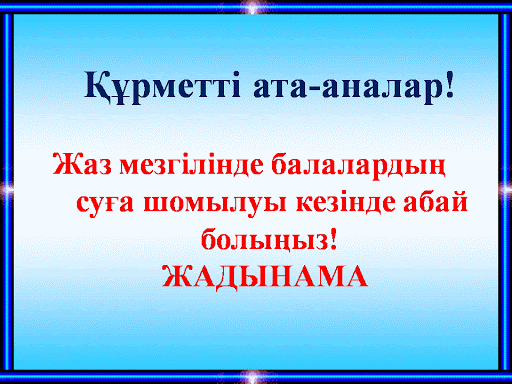 - Қатаң түрде балаларды үлкендердің қарауынсыз су айдыны жағалауында қалдырмаңыздар!