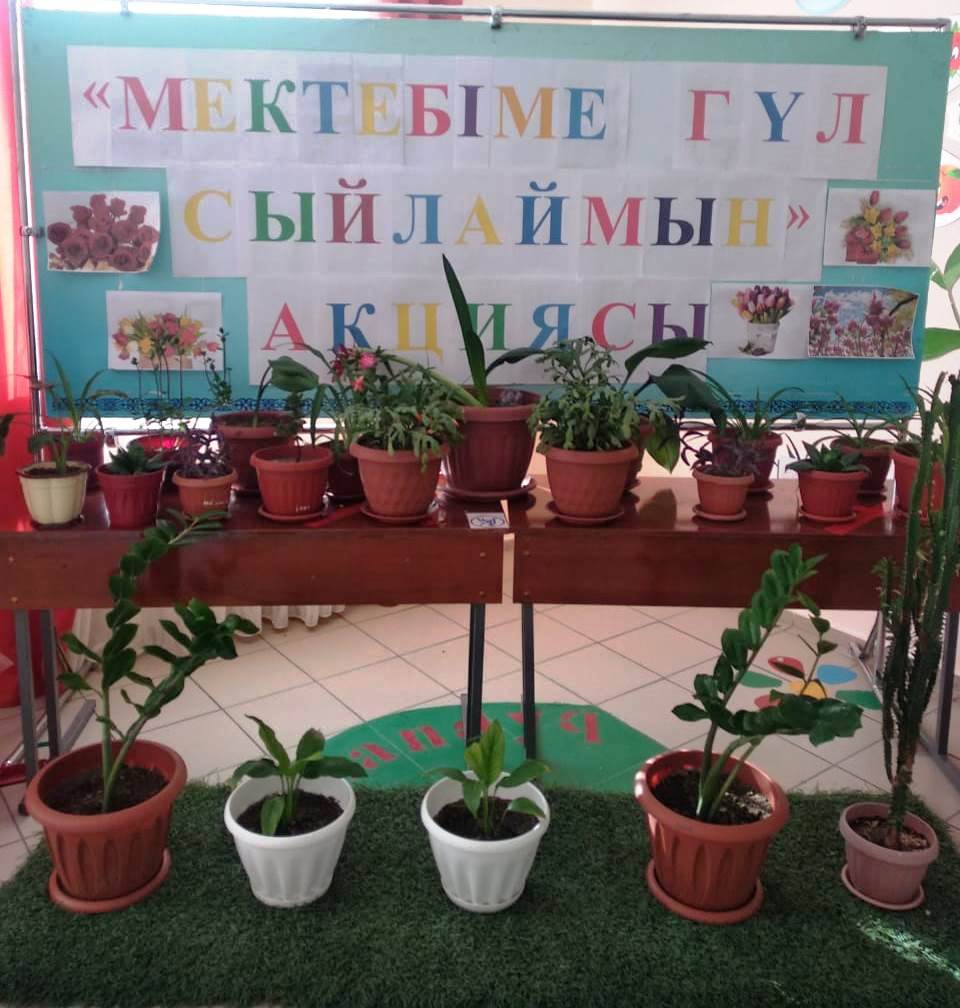05 мамыр 2021 0 1 2 3 4 5 Мектепке гүл сыйлаймын акциясы Оқушыларды еңбекқорлыққа баулу, гүлдердің сұлулығын тамашалауға тәрбиелеу мақсатында мектебімізде «Мектебіме гүл сыйлаймын» акциясы өткізілді. Оқушылар өздері өсірген гүлдерін мектепке сыйға тартты.