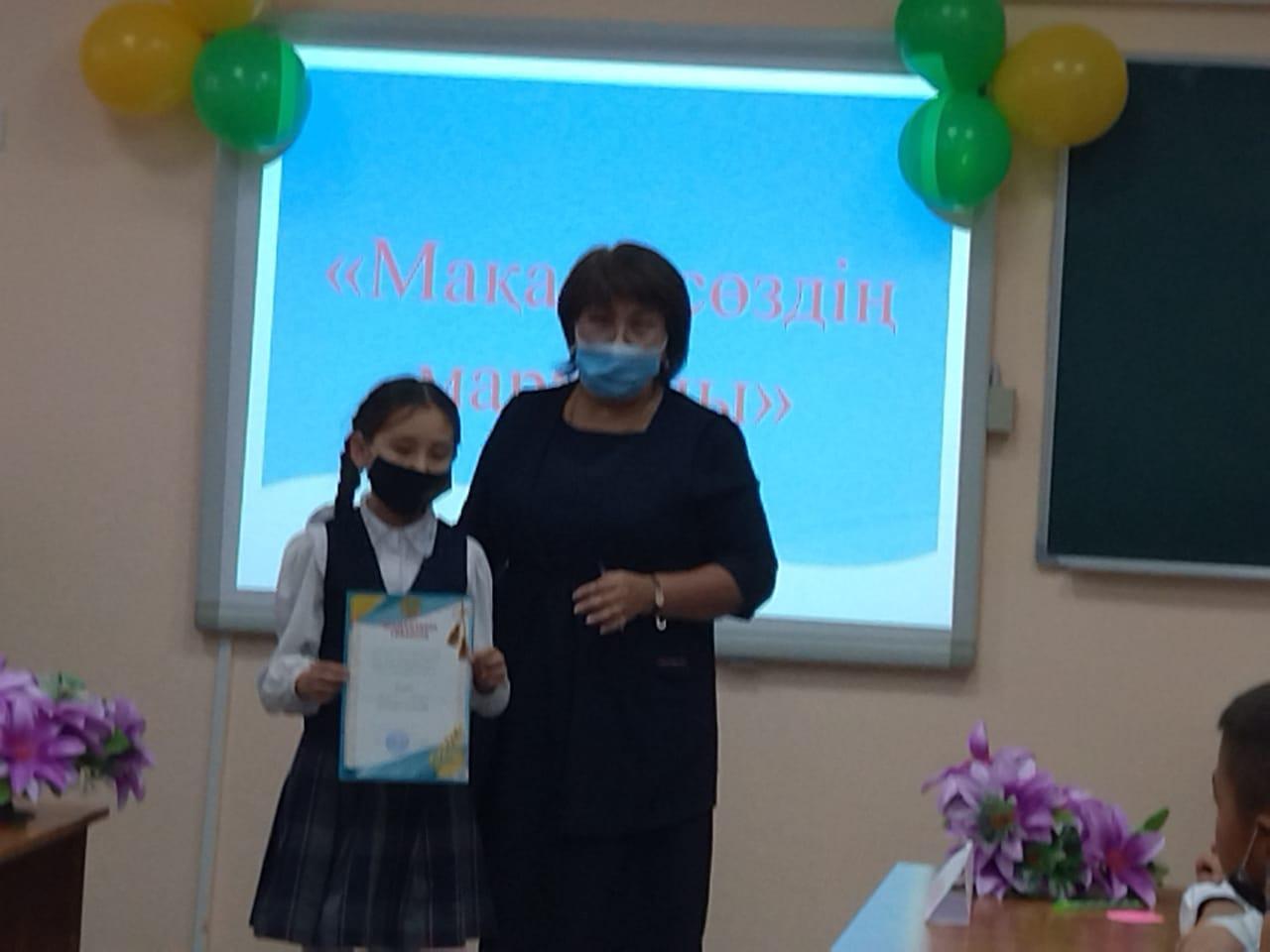 Әлия Молдағұлова атындағы орта мектебінде халық ауыз әдебиетінің айшықты бөлімі мақал-мәтелдерді орынды қолдана алу, шаршы топ алдында сөз жүйесін таба білу мақсатында бастауыш сынып мұғалімі Н.Садықованың ұйымдастыруымен 3-4 сыныптар арасында "Мақал- сөздің маржаны" тақырыбында сайыс сабағы өткізілді. Сайыс соңында белсенділігімен көзге түскен оқушылар марапатталды.