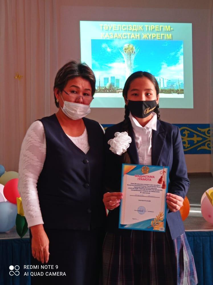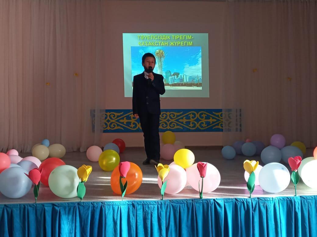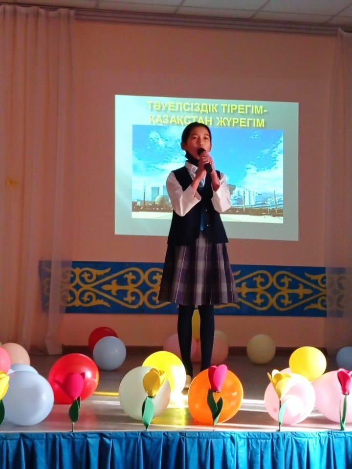 Әлия Молдағұлова атындағы орта мектебінде 23 қараша күні Қазақстан Республикасы Тәуелсіздігінің 30 жылдығына орай мектепішілік жоспарға сәйкес «Тәуелсіздік тірегім,Қазақстан жүрегім» тақырыбында 1 – 9 сыныптар арасында мәнерлеп оқу байқауы өткізіліп,жеңімпаздар мақтау қағаздарымен марапатталды.