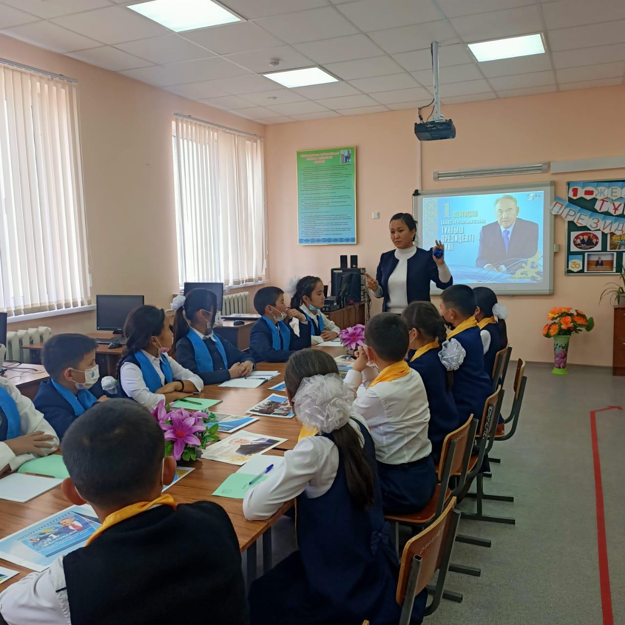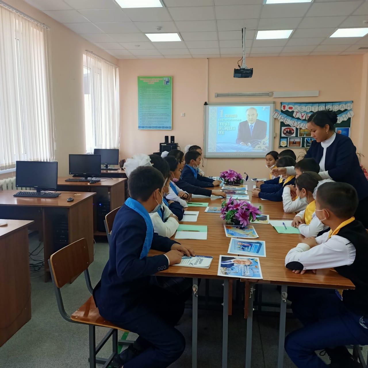 Әлия Молдағұлова атындағы орта мектебінде Қазақстан Республикасының Тәуелсіздігіне- 30 жыл толуына және 1 желтоқсан "Президент күні" қарсаңында Елбасының өмір жолынан үлгі ала отырып, Отанын, халқын сүюге, азаматтыққа, патриоттыққа тәрбиелеу мақсатында 5 сынып жетекшісі Б.Джилкибаеваның ұйымдастыруымен "Кемеңгер Елбасы" тақырыбында тәрбие сағаты өткізілді.