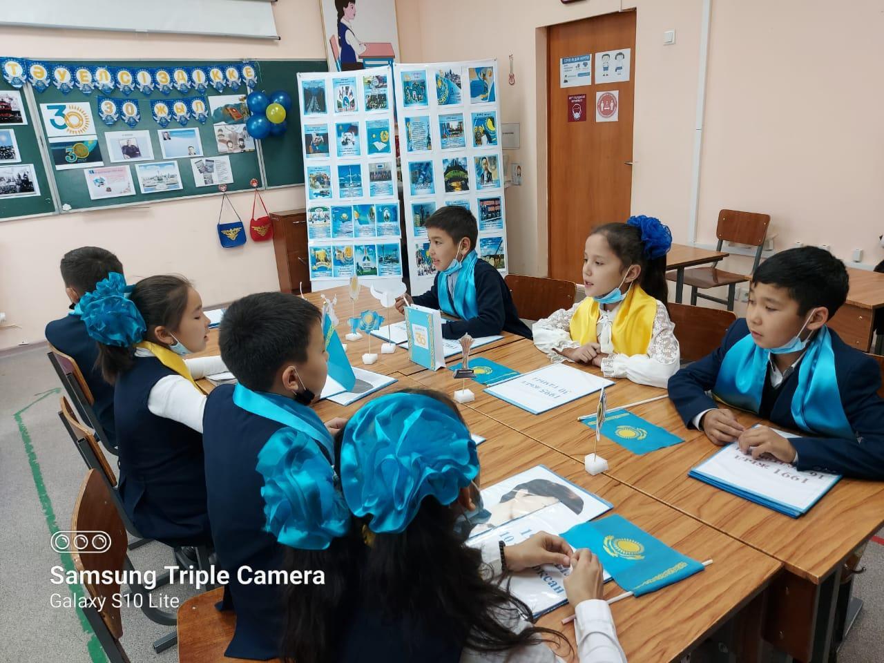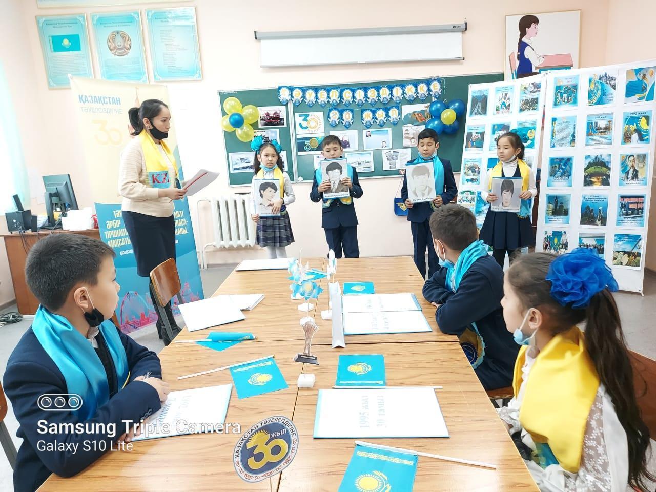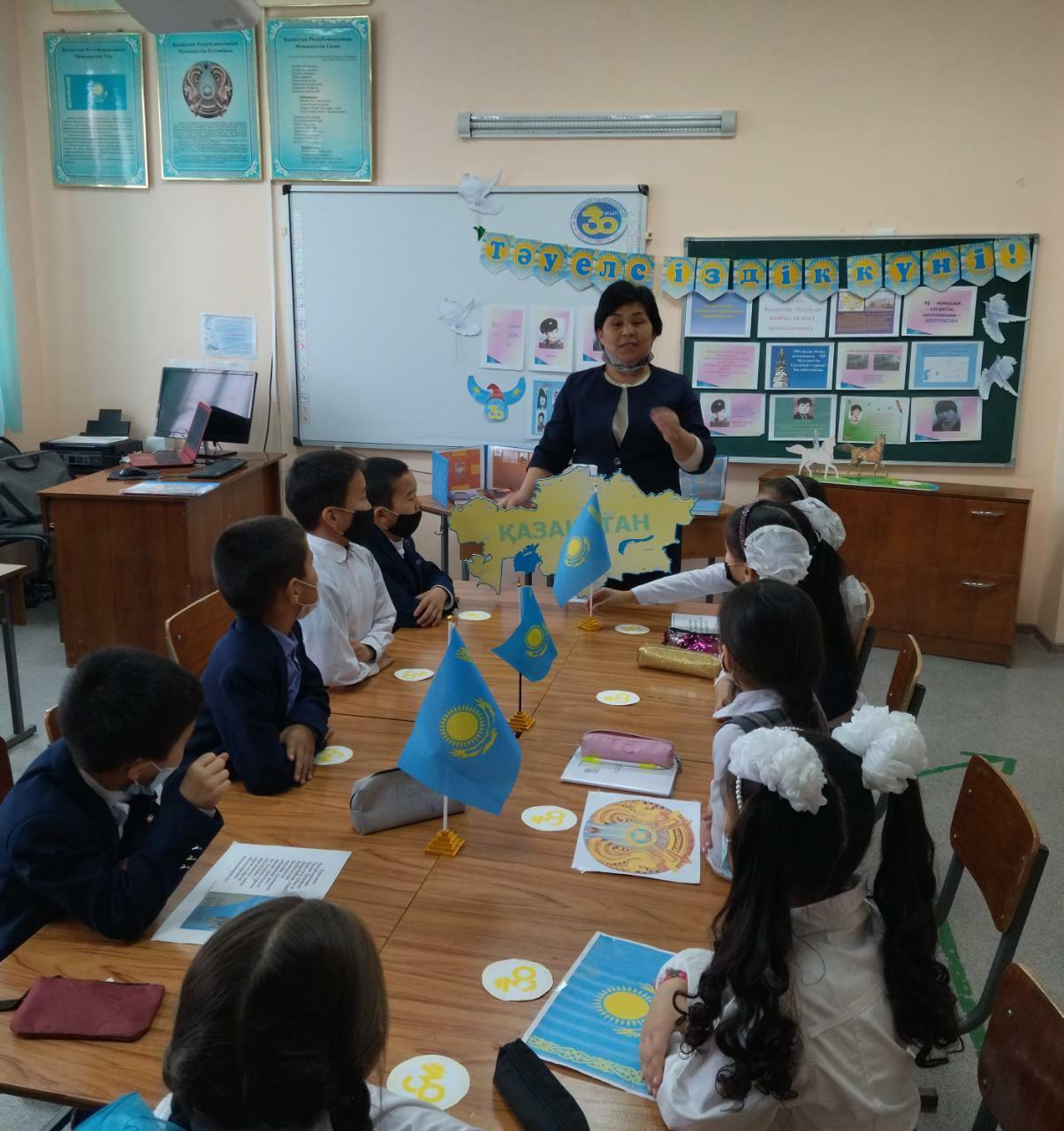 Ә.Молдағұлова атындағы орта мектебінде Қазақстан Республикасы Тәуелсіздігінің 30 жылдығына орай өскелең ұрпақты Отанды сүюге,туған ел тарихын білуге,Қазақстан Республикасының рәміздерін қастерлеуге тәрбиелеу мақсатында 1 - 4 сыныптар арасында «Тәуелсіздік - тірегім» тақырыбында бірыңғай сынып сағаттары өткізілді.