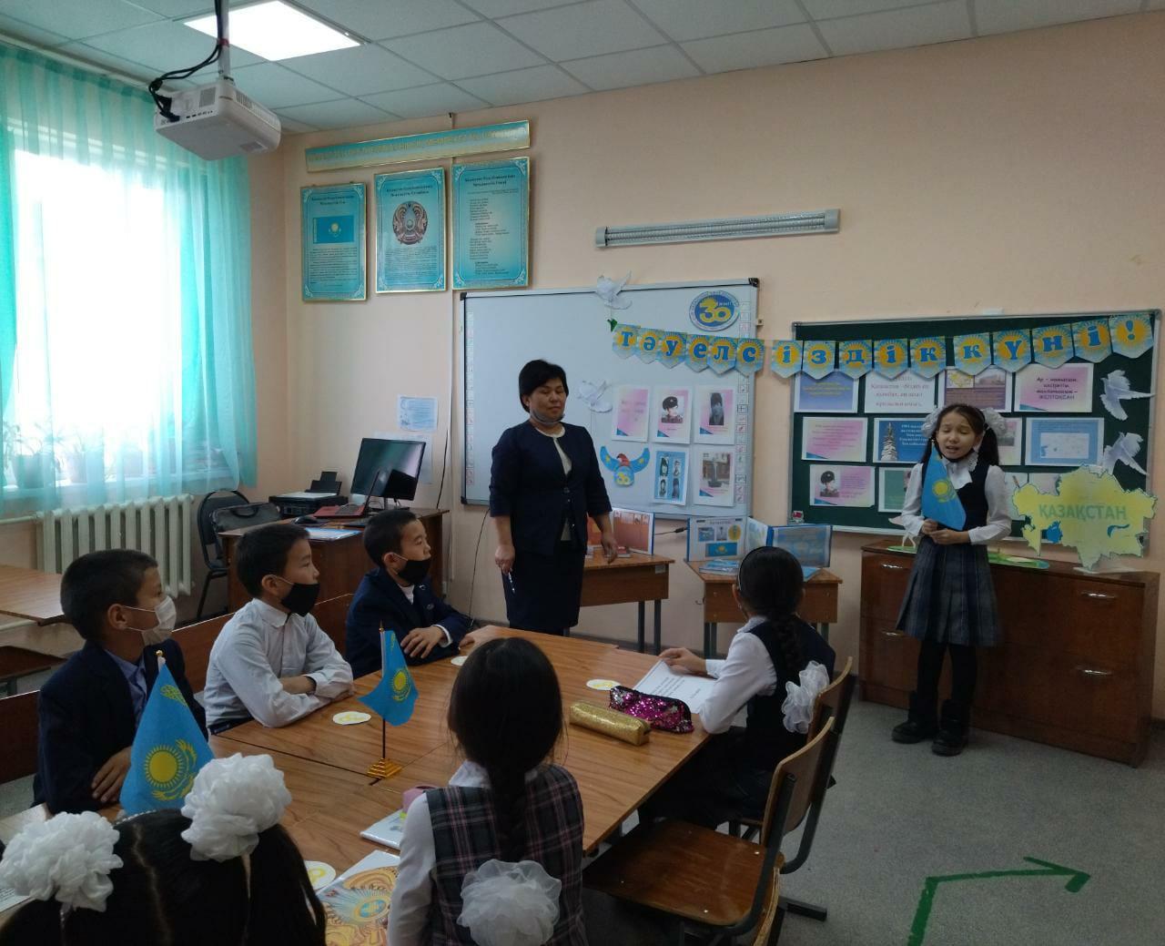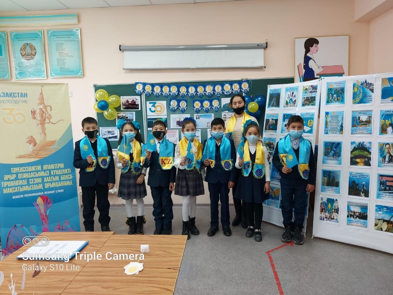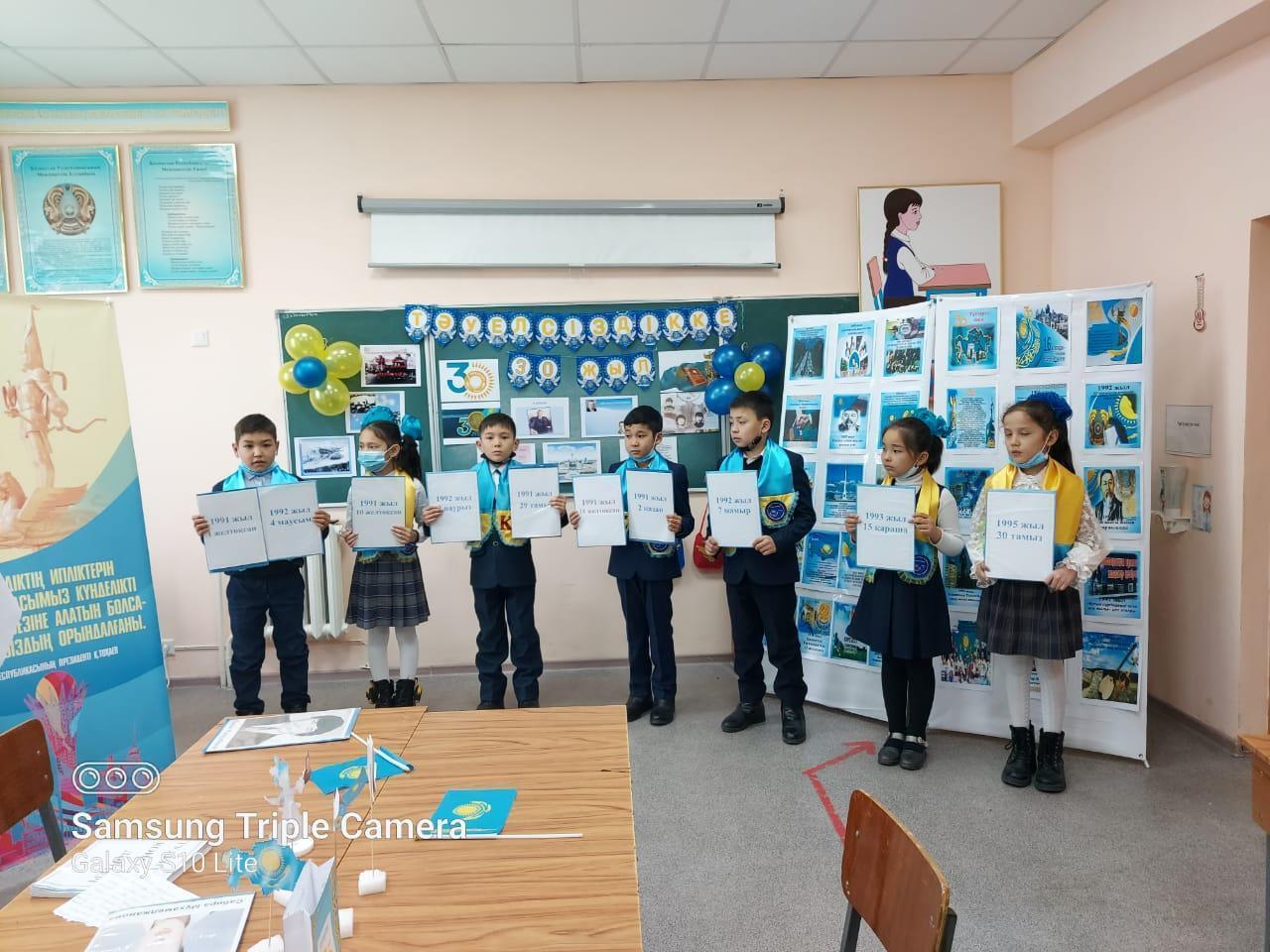 Ә.Молдағұлова атындағы орта мектебінде Қазақстан Республикасы Тәуелсіздігінің 30 жылдығына орай өскелең ұрпақты Отанды сүюге,туған ел тарихын білуге,Қазақстан Республикасының рәміздерін қастерлеуге тәрбиелеу мақсатында 1 - 4 сыныптар арасында «Тәуелсіздік - тірегім» тақырыбында бірыңғай сынып сағаттары өткізілді.