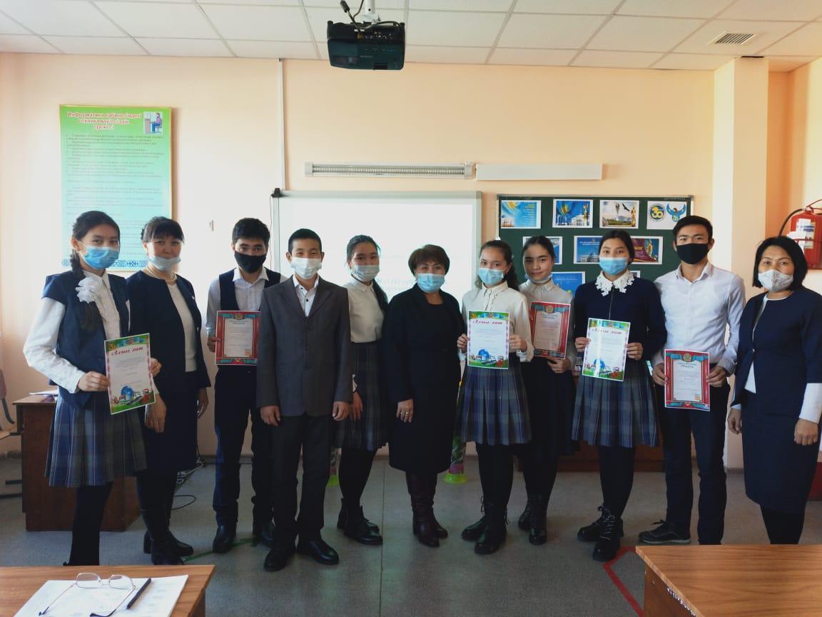 21 желтоқсан 2021 0 1 2 3 4 5 *Тәуелсіз елдің-білімді ұрпақтары * Әлия Молдағұлова атындағы орта мектебінде тарих пәні мұғалімі Г.А. Уәлиеваның ұйымдастыруымен 9-10-11сыныптар арасында *Тәуелсіз елдің-білімді ұрпақтары *тақырыбында интеллектуалды ойын өтіліп, жеңімпаз сыныптар марапатталды.