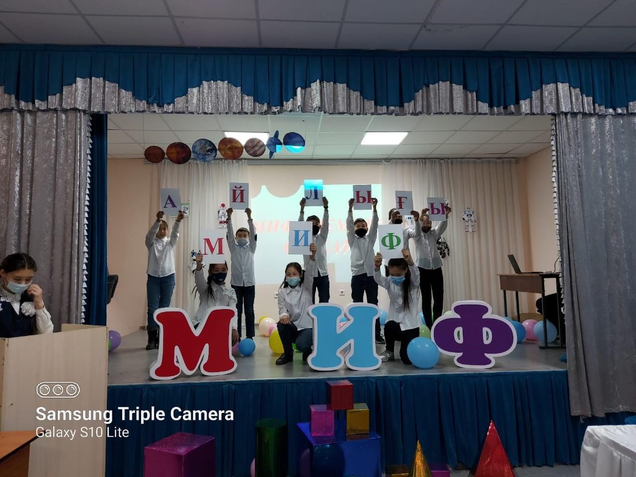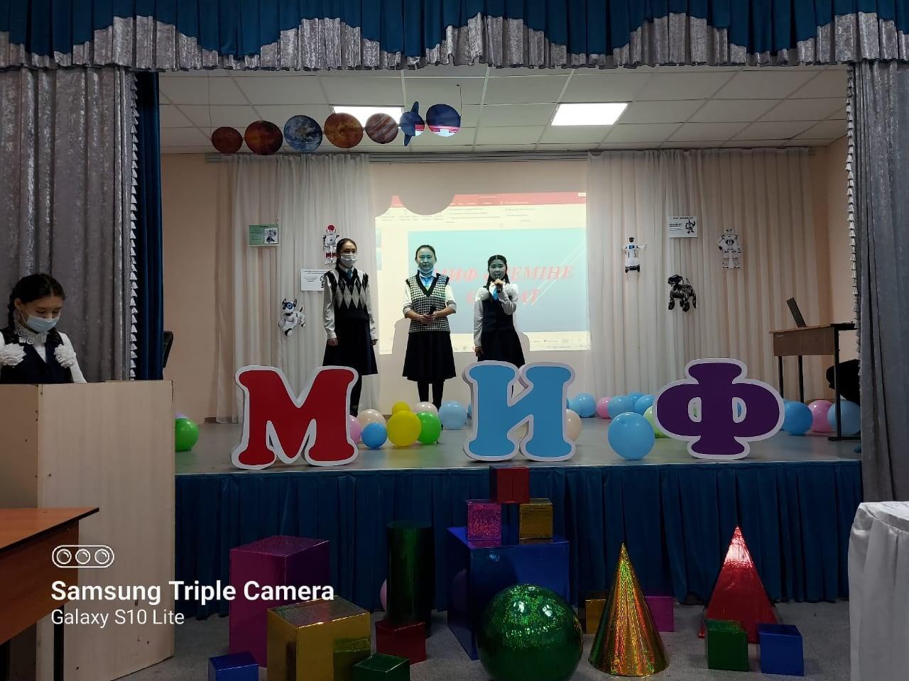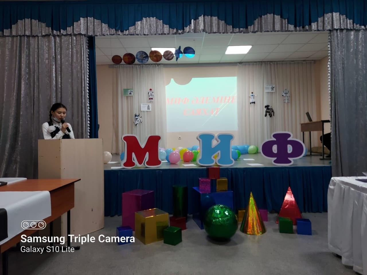 "МИФ әлеміне саяхат" атты физика, математика, информатика пәндеріні айлығының ашылу салтанатты кеші өткізілді. Кеште айлық жоспар таныстырылды. Логикалық ойлау қабілеттерін пәнге деген ынтасын, белсенділігін арттыру үшін Quizizz бағдарламасы арқылы викторина сұрақтар қойылды. Оқушылар белсенділік танытты. I орын Болат Айым, II орын Әлжан Құралай, III орын Айтжан Айдана иеленді. 9 сынып оқушысы Әсембай Жалғас робот-бармен, танк с роборукой таныстырды. Смартфон арқылы 3D голограмма тамашалады. Оқушылар әр пәнге арнап тақпақ, өлең, әндерін оқыды.