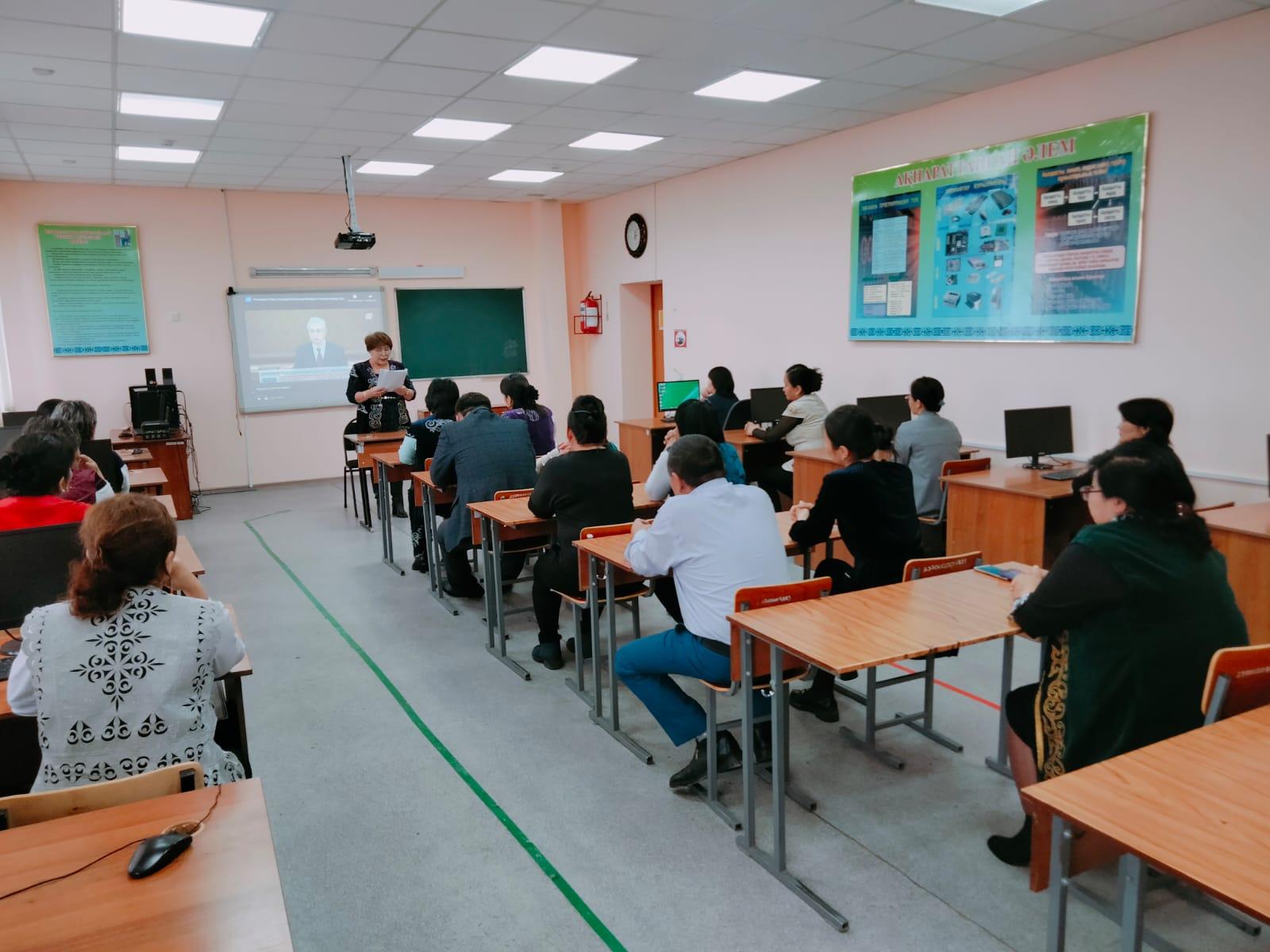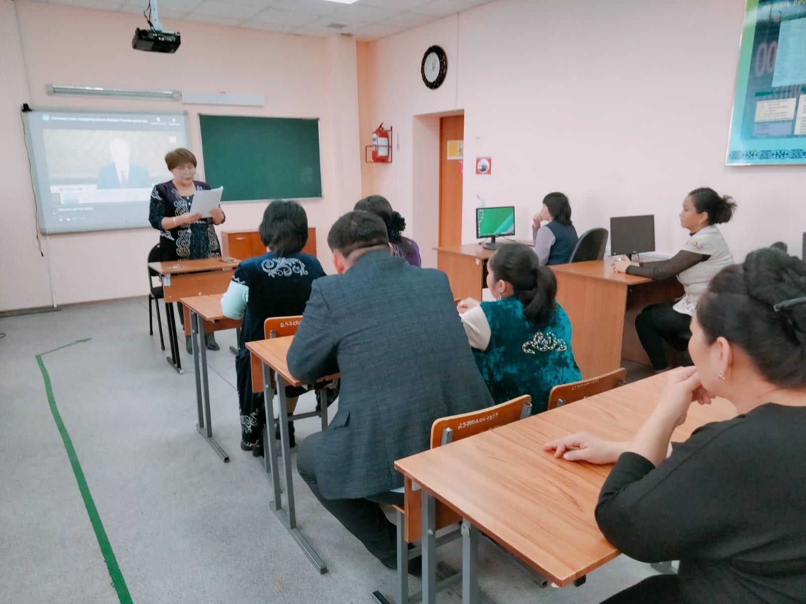 Әлия Молдағұлова атындағы орта мектебінің басшысы Бабасова Қалдыкүл Мұхтарханқызы мектеп ұжымын мемлекет басшысы Қасым-Жомарт Тоқаевтың 2022 жылғы 16 наурыздағы «Жаңа Қазақстан: Жаңару мен жаңғыру жолындағы» Қазақстан халқына жолдауымен таныстырып, жолдаудың негізі бағыттарын түсіндіріп, мектеп ұжымымен бірге талқылады.
