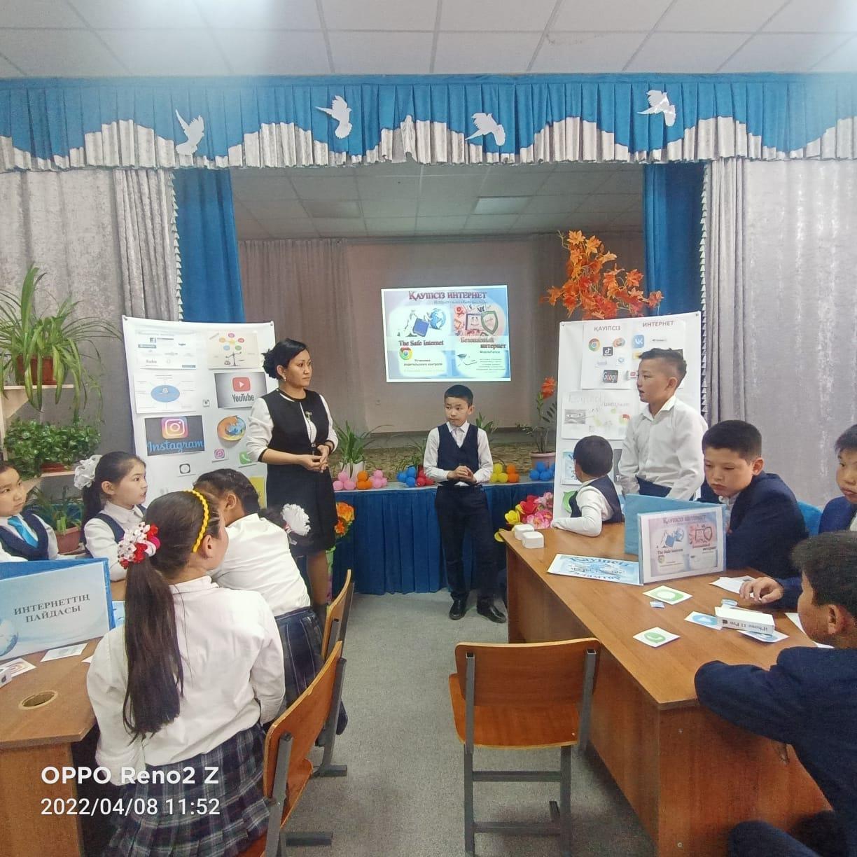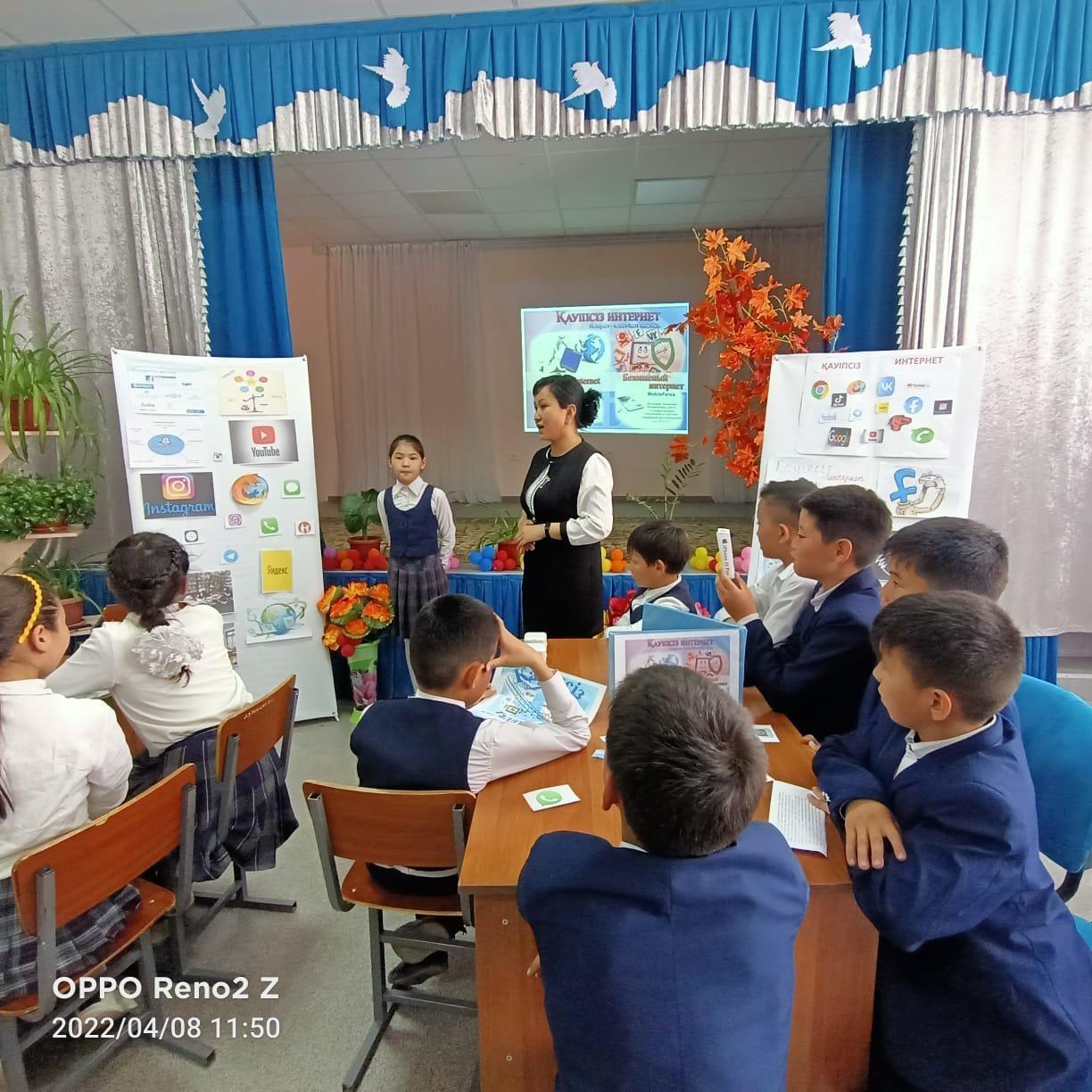Әлия Молдағұлова атындағы орта мектебінде 2022 жылдың 7 сәуір күні «Қауіпсіз Интернет» атты іс – шара жоспары аясында оқушыларға интернет туралы толық ой қалыптастыру, интернет сауаттылығына жауапкершіліктерін арттырып,ақпараттандыру мақсатында 5 сынып жетекшісі Б.Жылқыбаева «Пайдалы және қауіпсіз интернет» тақырыбында сынып сағатын өткізді.