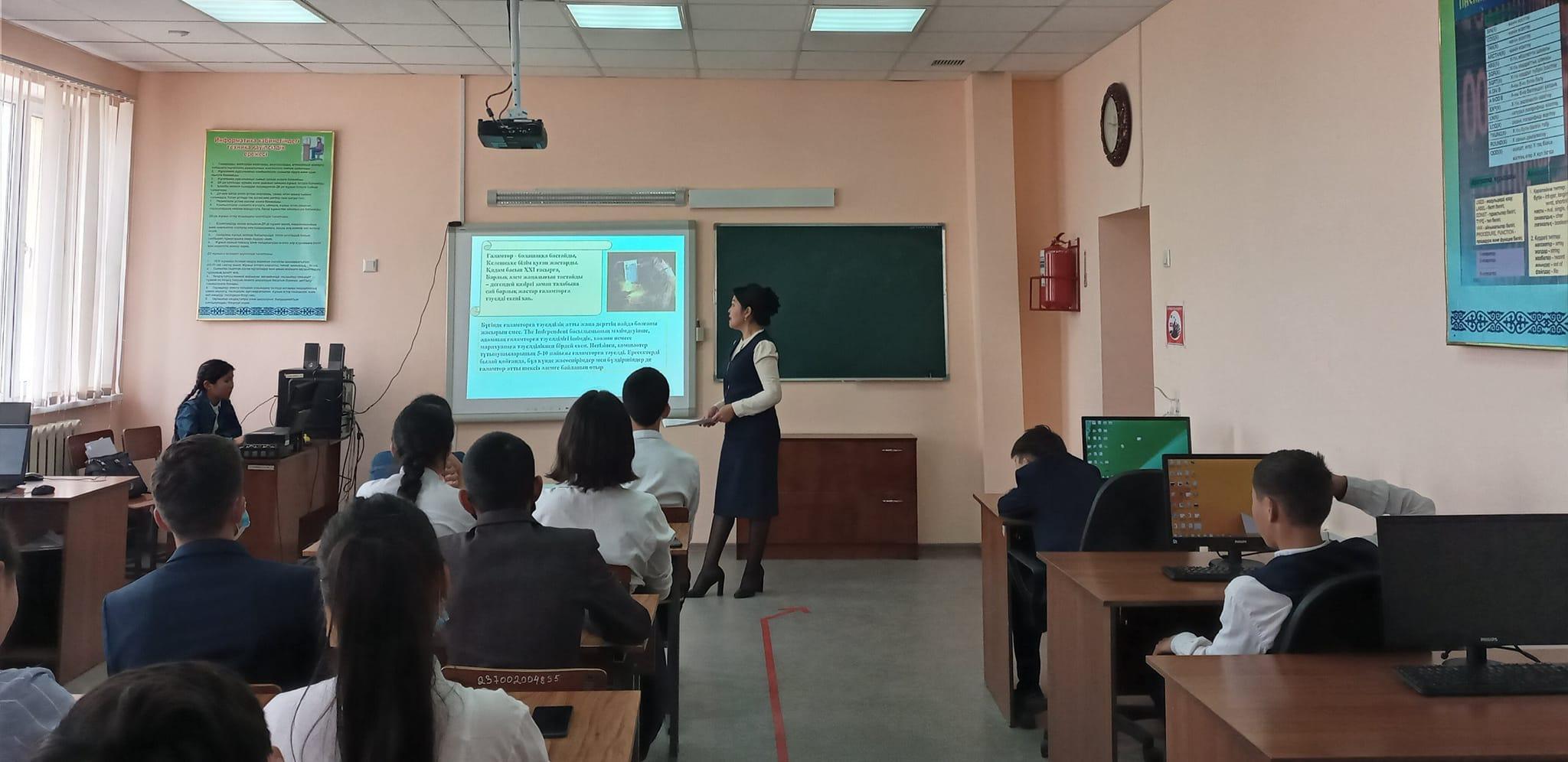 Әлия Молдағұлова атындағы орта мектебінің психологы Жауғашева Гауһар Тасболатқызы 7-10 сынып оқушылары арасында ғаламтор, ғаламтордағы қауіпсіздік ережелерімен таныстыру, желіде ақпарат алмасу жолдарын, ғаламтор желісіндегі қажетсіз байланыстың қаупін түсіндіру мақсатында "Интернеттің алдын алу - оқушылар тәуелділігі" тақырыбында слайдпен түсіндірме жұмысы, психологиялық тренинг жұмысын жүргізді.