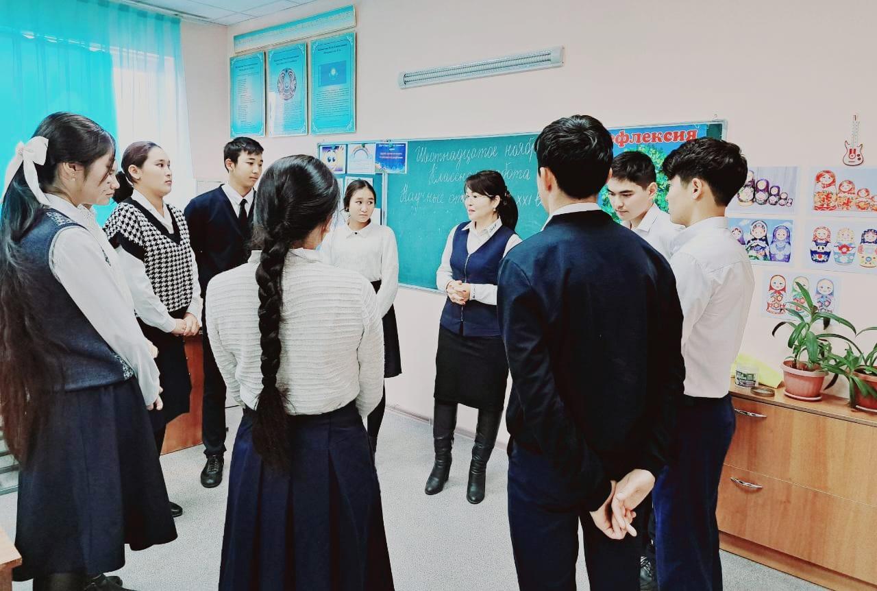 Әлия Молдағұова атындағы орта мектебінің психологы Жауғашева Гауһар Тасболатқызы мелекеттік қорытынды аттесттауға баратын 11-сынып оқушылары арасында мамандық таңдауда олардың негізгі түрлері, классификацисы белгілері, мамандық тобы, таңдау әдістері туралы білімдерін, түсініктерін кеңейте отырып, мамандықтарға деген ынта-ықыласын, қызығушылықтарын арттыру мақсатында "Біз бастаймыз, мамандықты дұрыс таңдаймыз" тақырыбында психологиялық тренинг сабақ өткізді.