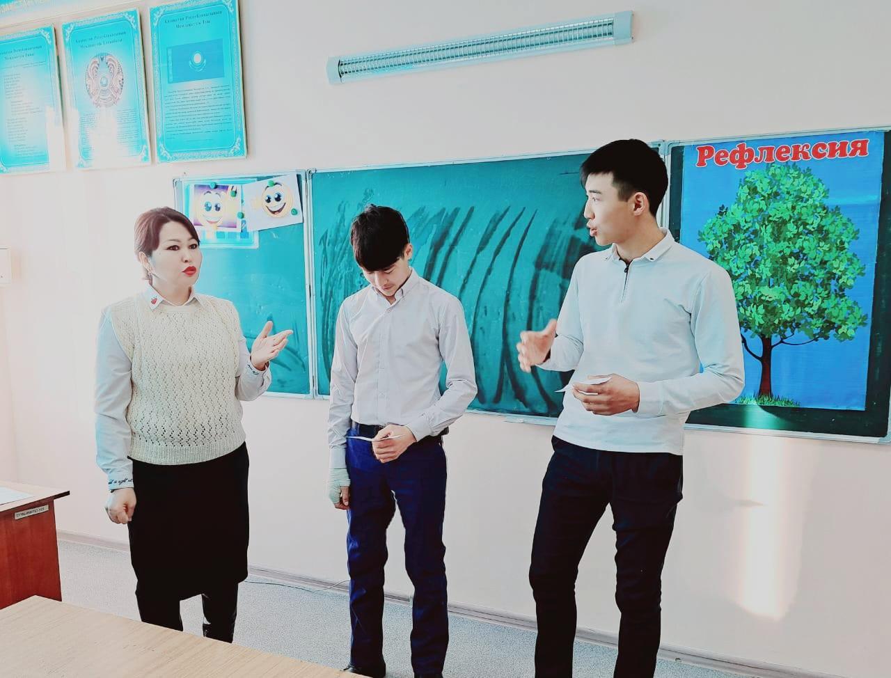 Әлия Молдағұлова атындағы орта мектебінің психологы Жауғашева Гауһар Тасболатқызы мемлекеттік қорытынды аттестаттауға баратын 11 - сынып оқушылары арасында бойындағы мазасыздану, қобалжу, үрейді азайтып сәттілікке бағыттау, ерік – жігерін өз қабілетін дамыту. Өздеріне деген сенімділігін арттыру және жағымды көңіл – күй қалыптастыру мақсатында "Мен өз болашағымды өзім құрастырамын" тақырыбында психологиялық тренинг өткізді.
