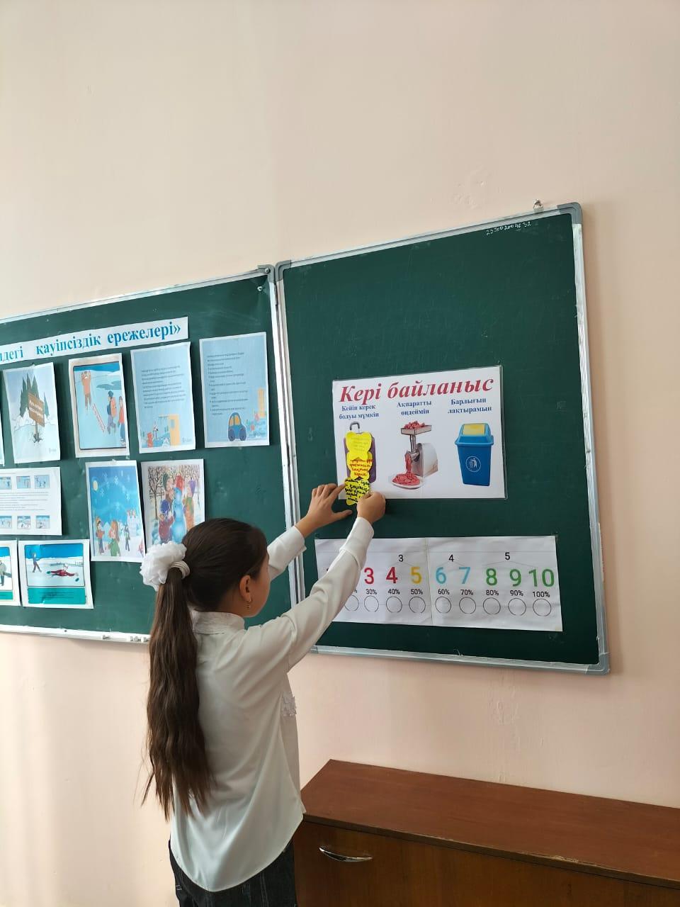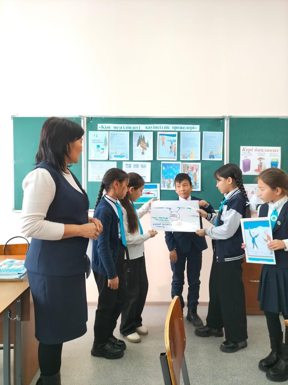 Әлия Молдағұлова атындағы орта мектебінде оқушылардың қыс мезгілінде үйде,көшеде,табиғатта қауіпсіздік ережесін сақтай білу жөніндегі білімдерін бекітіп,өз қауіпсіздігіне жауапкершілікпен қарауға,қауіпсіздік ережелерін сақтай білуге тәрбиелеу мақсатында 1 – 11 сыныптар арасында «Қыс мезгіліндегі қауіпсіздік ережелері» тақырыбында бірыңғай сынып сағаттары өткізілді.