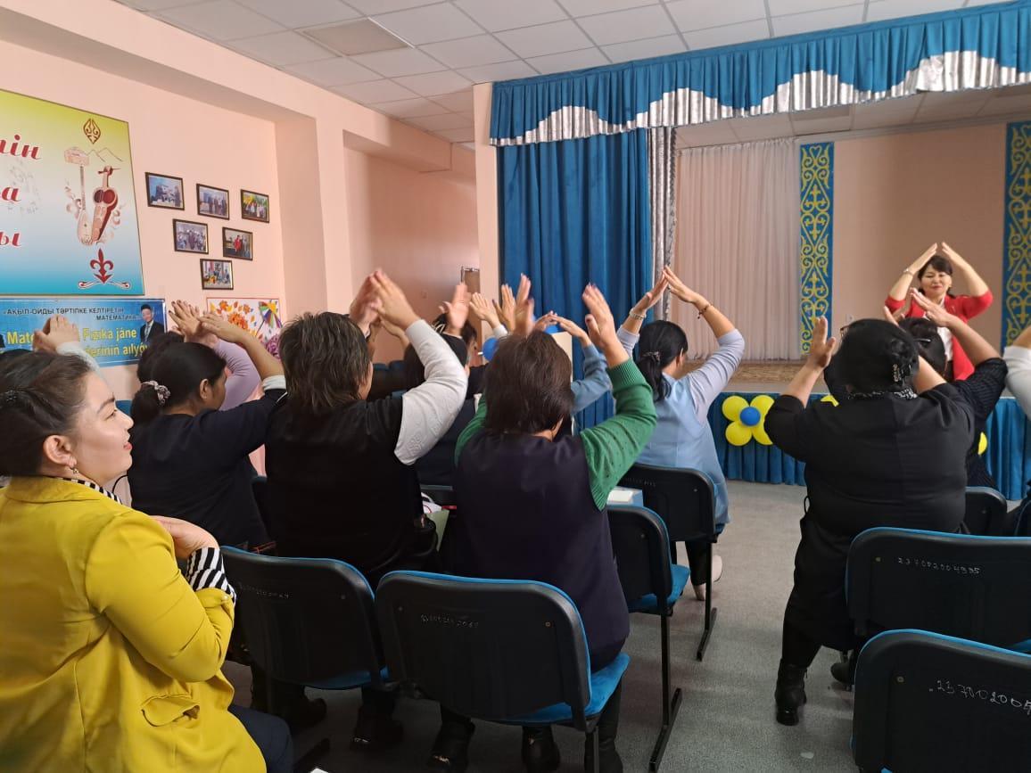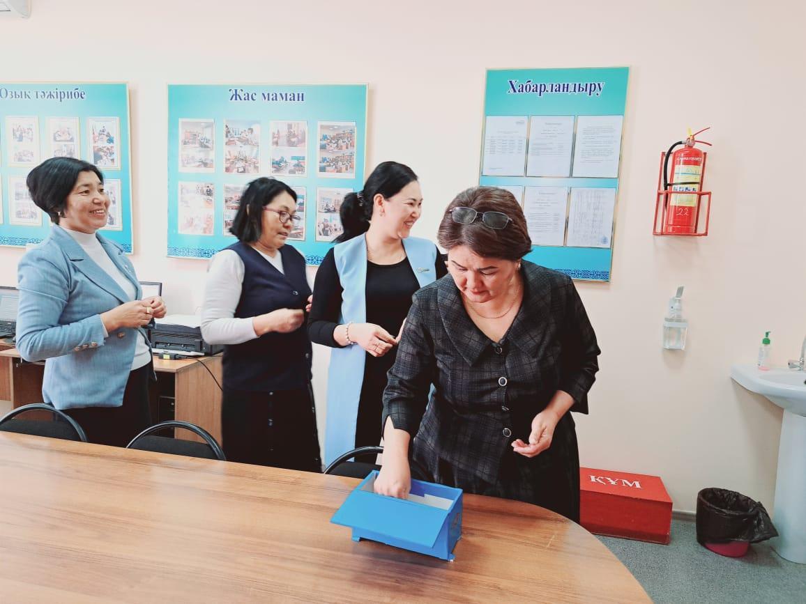Әлия Молдағұлова атындағы орта мектебінің психологы Жауғашева Гауһар Тасболатқызы қатысушылардың айналасындағы адамдармен, ортамен қарым-қатынас дағдыларын дамыту, позитивтік көңіл-күйлерін көтеру, жүйке жүйесін демалдыру, бір-бірлеріне деген құндылық, сергектік, адамгершілік, мейірімділік қатынасын қалыптастыру және ұжымды біріктіру мақсатында ұстаздар арасында "Құпия дос" атты акциясын ұйымдастырды. Акция барысында ұстаздар бір-бірлеріне сыйлықтарын тарту етті. Сондай ақ ұстаздармен психологиялық тренинг өткізді