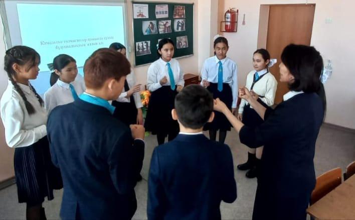 Әлия Молдағұлова атындағы орта мектебінде құқықтық тәрбие айлығы барысында 8 сынып жетекшісі Б.Бекмағанбетова оқушыларға құқықтық сауаттылығын арттырып,құқық бұзушылық және қылмыс белгілерімен таныстыру,қоғамның заңдары мен нормаларын орындауға тәрбиелеу мақсатында «Кәмелетке толмағандар арасында құқық бұзушылықтың алдын алу жұмыстарын үйлестіру жолдары» тақырыбында сынып сағатын өткізді.
