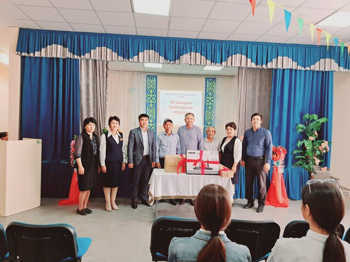 Әлия Молдағұлова атындағы орта мектебінде түлектердің туған жеріне, білім алған ұясына құрмет көрсетуге,танымал түлектердің табысты өмір жолын білім алушыларға үлгі ету мақсатында егемен еліміздің бірлігі мен берекесін нығайтуда,игілікті істерімен «Жомарт түлек» жобасы аясында 40 жылдық түлектеріміз өздері білім алған мектебіне музыкалық аппаратура мен микрофон сыйға тартты.Түлектеріміздің алтын ұя мектептерін естен шығармай,көмек көрсетіп жатқандығы көңіл қуантады.Отбасыларыңызға амандық,шаңырақтарыңызға шаттық тілейміз!