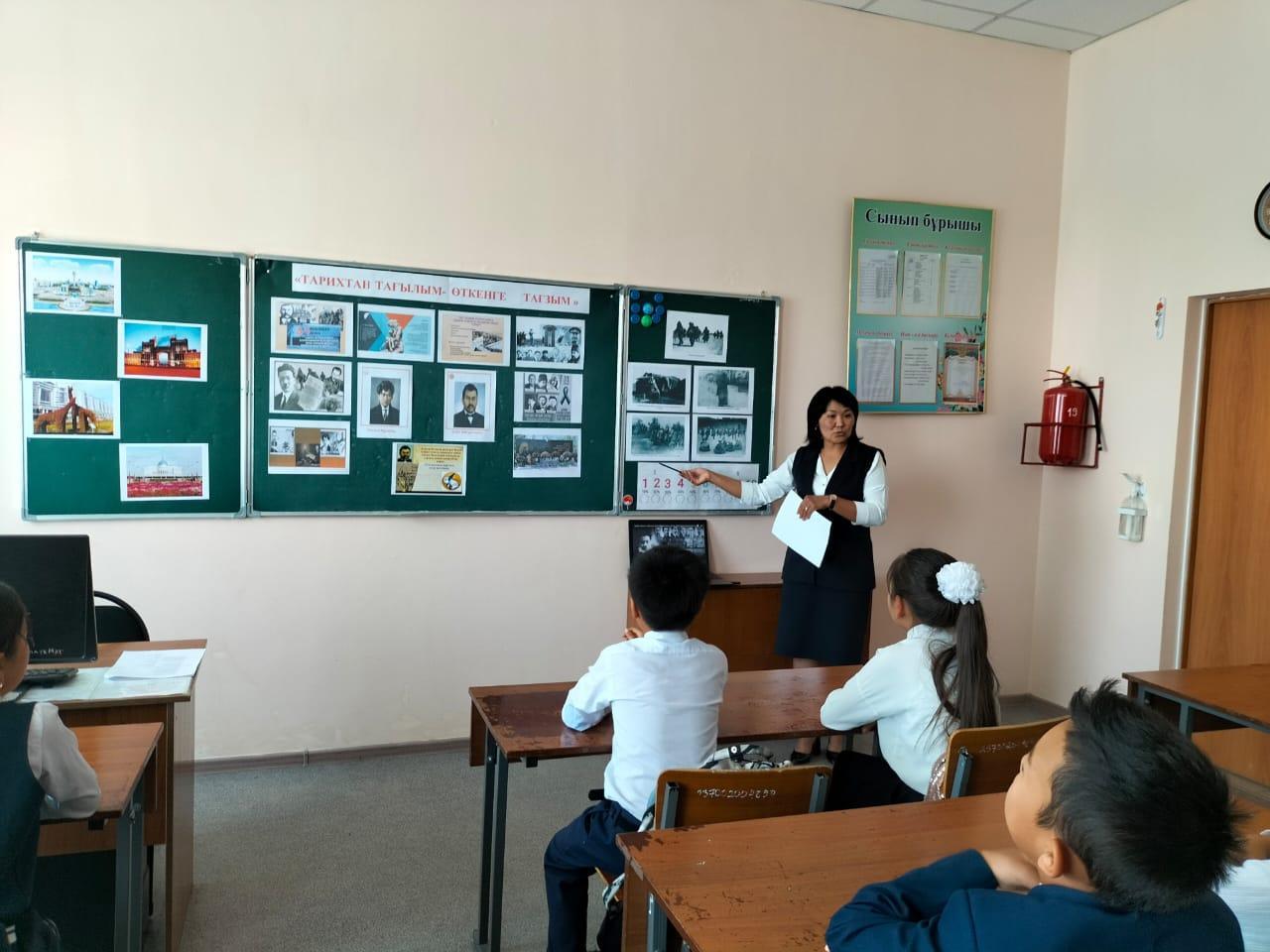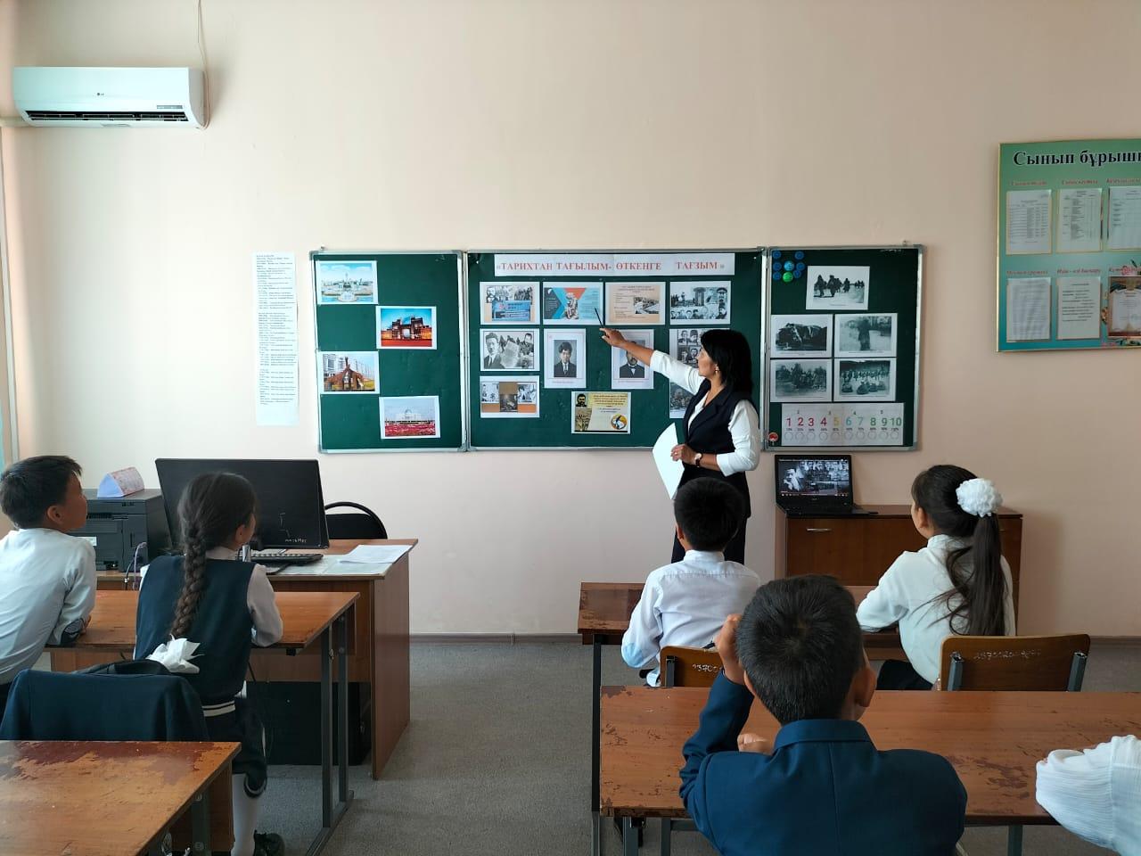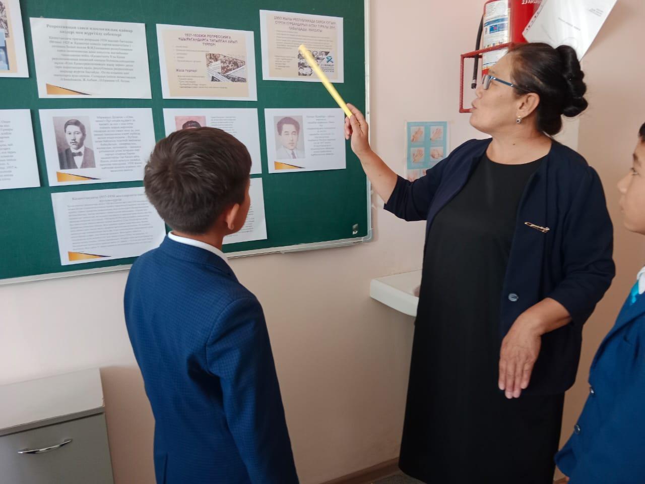 Әлия Молдағұлова атындағы орта мектебінде 31 мамыр қуғын – сүргін және ашаршылық құрбандарын еске алу күніне орай 1 – 11 сынып жетекшілері «Тарихтан тағылым – өткенге тағзым» тақырыбында сынып сағаттарын өткізді.Бұл күн қазақ халқының жанына жара салған уақытты еске алу,аза тұту күні екенін естен шығармаған жөн.Осы бір зұлмат жылдарда Сталиндік лагерде тұтқында отырғандар қайғы жұтып ұлт зиялыларынан айырылдық.Тек өткенге салауат айтып халқымыздың әр өткен оқиғасын жас ұрпаққа жете түсіндіріп,ұлтжанды азаматтар тәрбиелеу басты парызымыз.