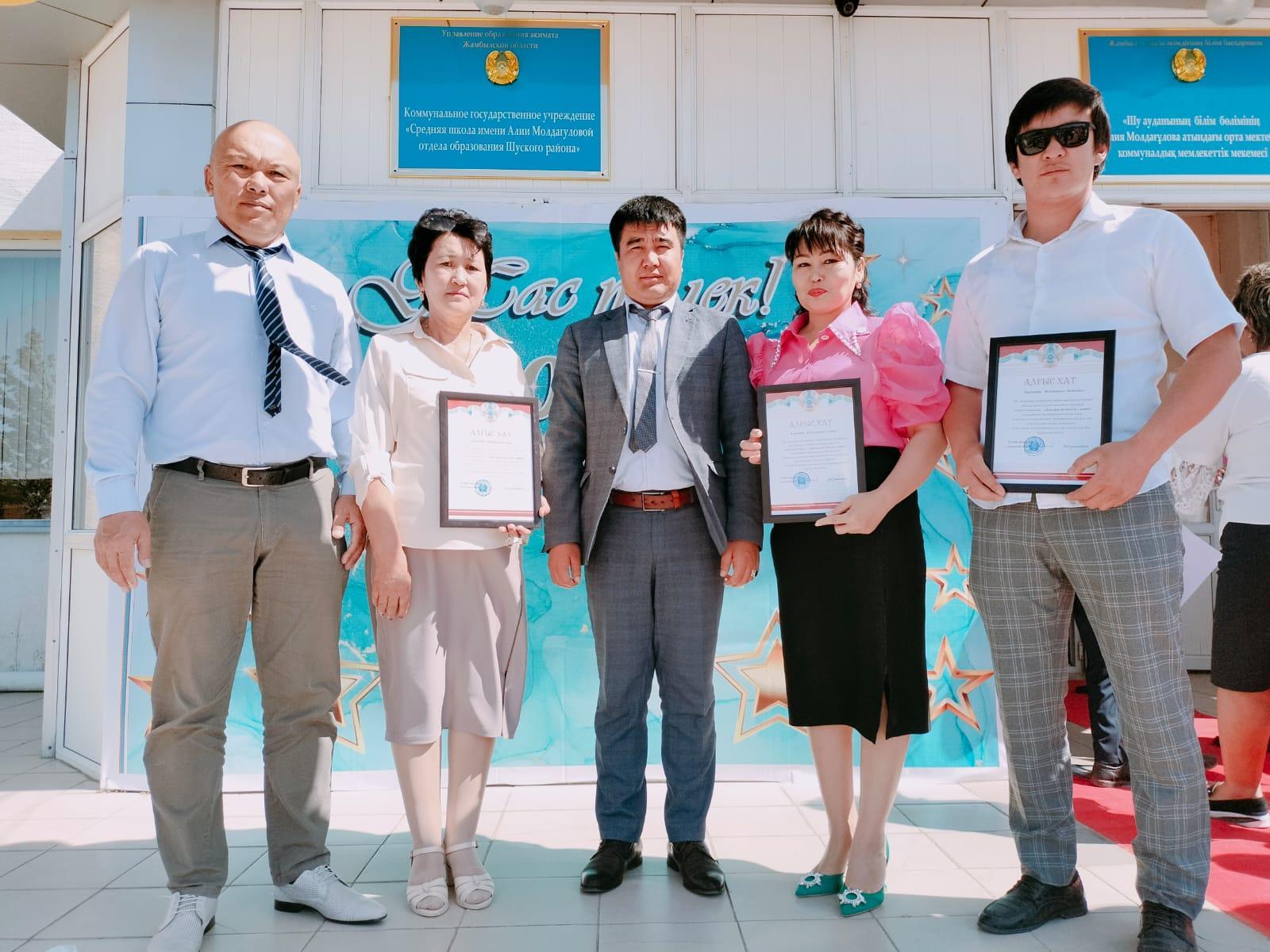 Әлия Молдағұлова атындағы орта мектебінде 2022 – 2023 оқу жылындағы «Болашаққа бастар жол!» тақырыбында соңғы қоңырау салтанатты жиыны өткізілді.Салтанатты жиынға ауыл әкімі Н.Сұлтанбаев,ақсақалдар алқасының төрағасы А.Бишалов,ардагер ұстаздар қатысты. Мектеп директоры А.Е.Тогузаков ұстаздарды,ата – аналарды,оқушыларды мерекемен құттықтап,үздік оқып аяқтаған оқушыларды мақтау қағаздарымен марапаттап,мектеп бітіруші түлектерімізге алдағы қорытынды аттестаттау емтихандарын және ҰБТ – ді сәтті өткізулеріне шын жүректен тілектес екенін білдірді.