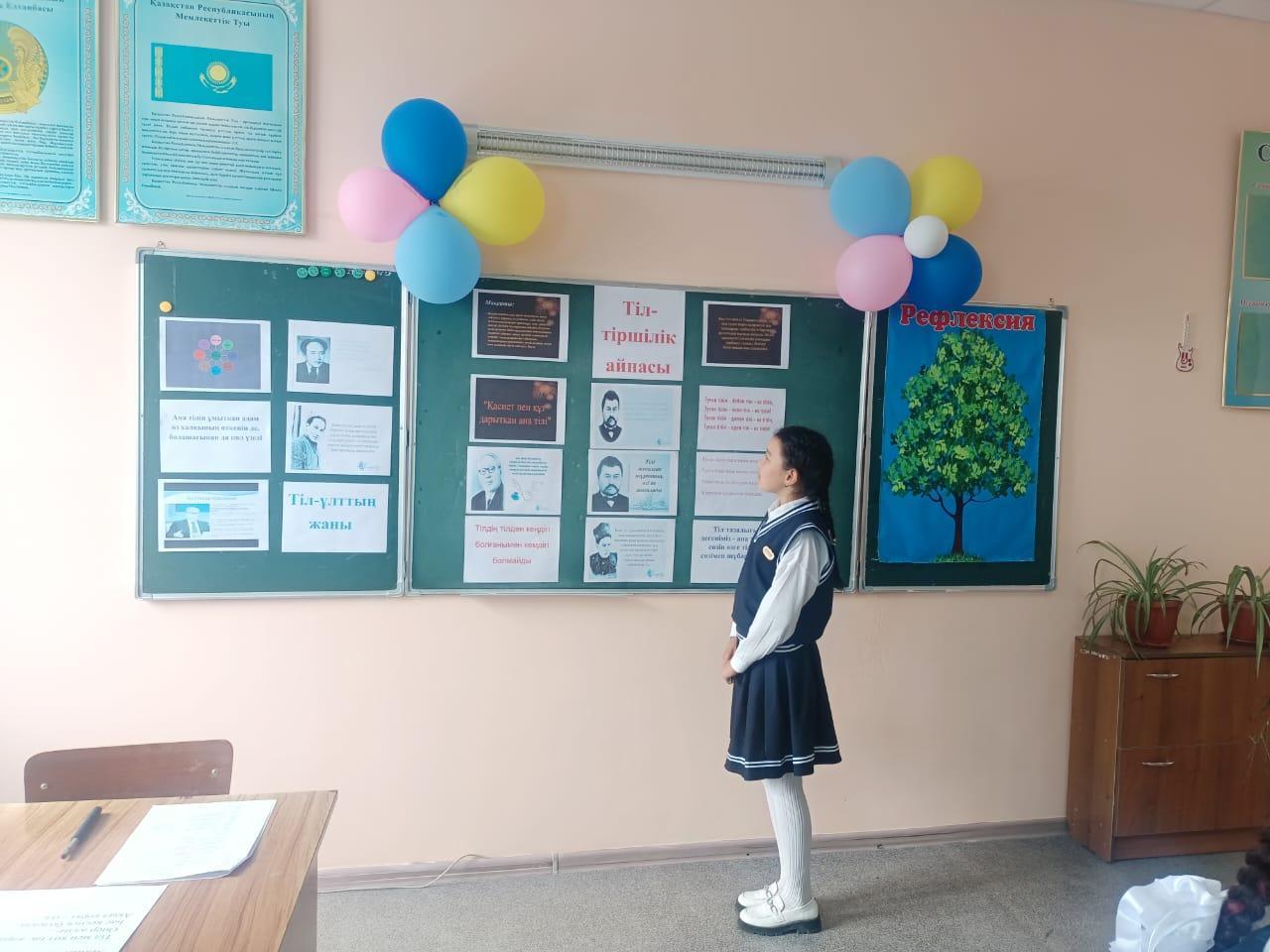 Әлия Молдағұлова атындағы орта мектебінде Қазақстан халық тілдері күні мерекесіне орай жоспар бойынша жас ұрпақты ана тілінің қадір – қасиетін түсіне білуге шақыру,ана тілін сүюге,ана тілін ардақтай білуге тәрбиелеу мақсатында 1 – 11 сыныптар арасында «Тіл – ұлттың жаны», «Тіл – тіршілік айнасы», «Тіл – асыл қазынам» тақырыбында сынып сағаттары өткізілді.