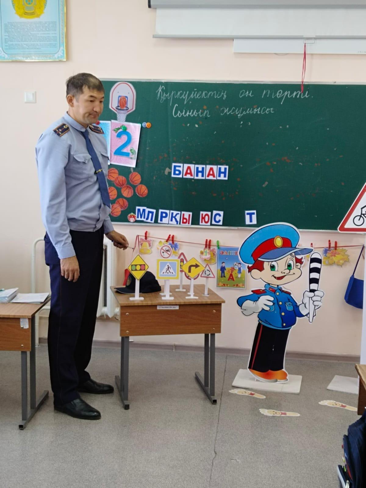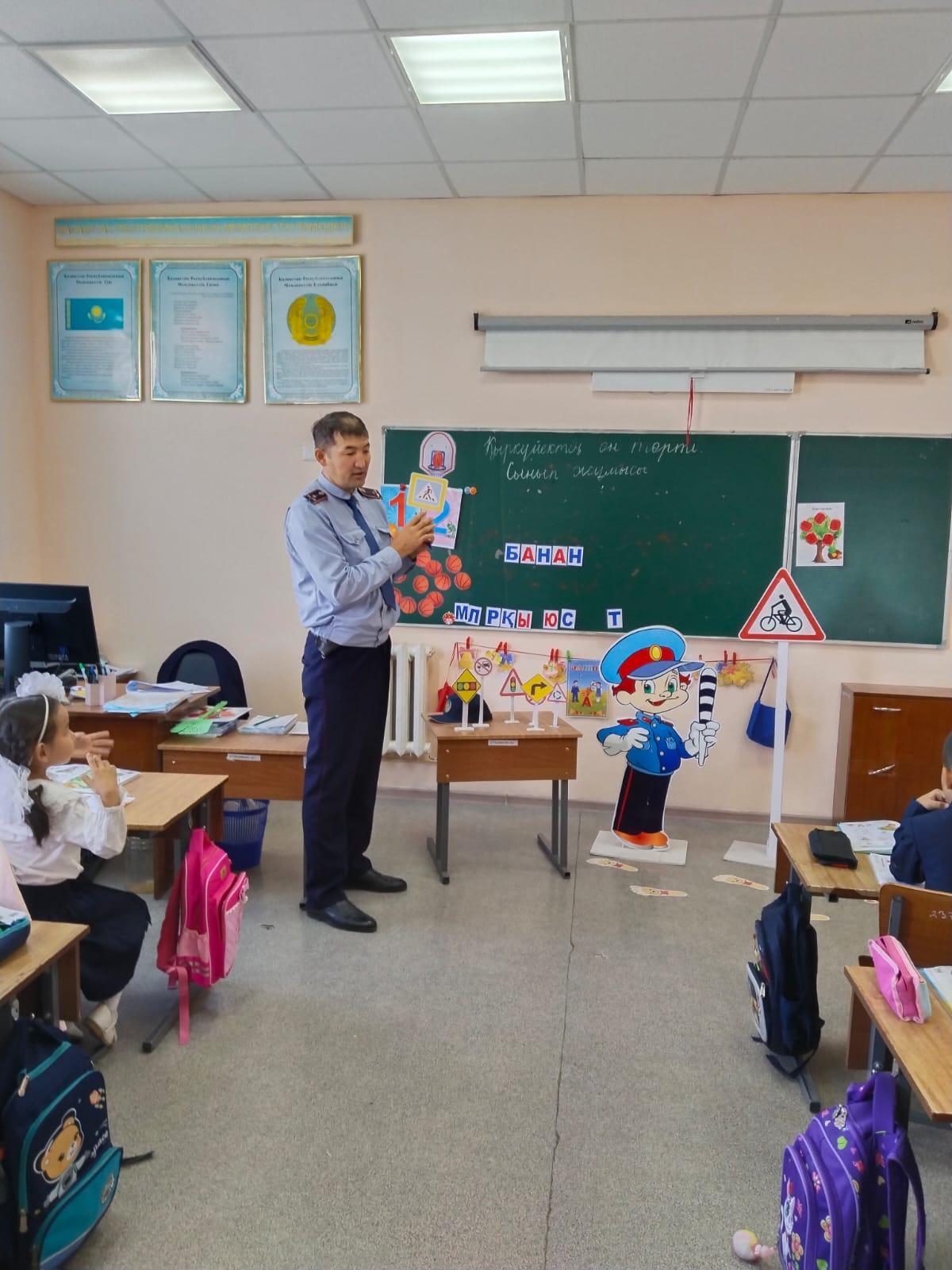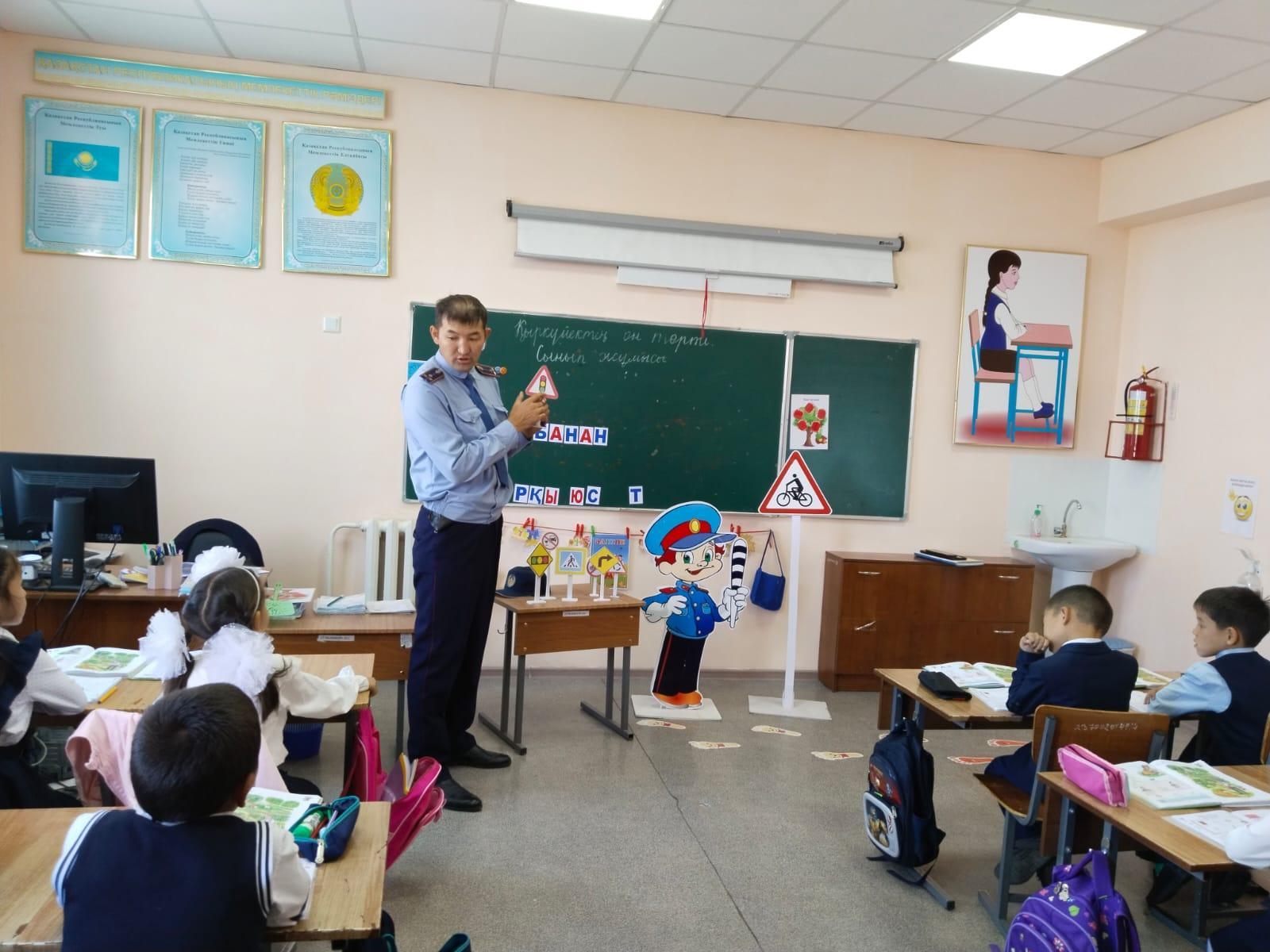 Әлия Молдағұлова атындағы орта мектебінде 14 қыркүйек күні Шу АПБ – нің ЖПҚ полиция аға лейтенанты Қ.Ж.Иманбаев жолда жүру ережесін есте сақтау,балаларды жол белгілерімен таныстыру мақсатында 1 сынып оқушыларымен «Жолда жүру ережесін сақтайық!» тақырыбында қауіпсіздік ережелерімен таныстырып,түсіндірме жұмыстарын жүргізді.
