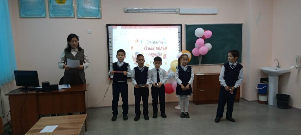 Әлия Молдағұлова атындағы орта мектебінде бастауыш сыныптар айлығы барысында бастауыш сынып мұғалімі Нұрмағанбетова Камшаттың ұйымдастыруымен 3-4 сыныптар арасында оқушыларды тапқырлыққа, ізденімпаздыққа баулу мақсатында "Озық ойлы оқушы" тақырыбында сайыс сабағы өткізілді.