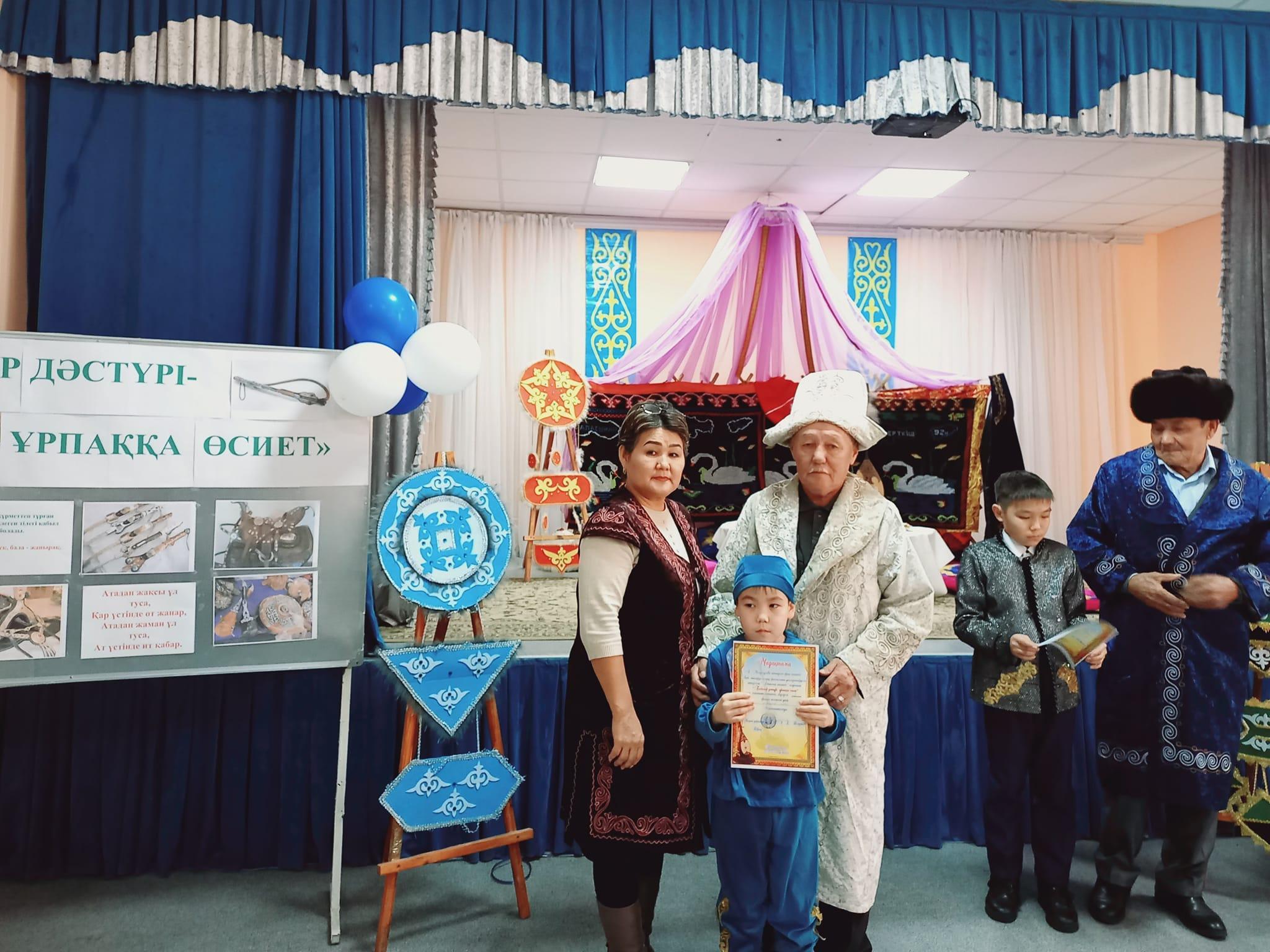 Әлия Молдағұлова атындағы орта мектебінде «Даналық мектебі» клубының жұмыс жоспарына сәйкес бабаларымыздан келе жатқан рухани дәстүрлерімізді, құндылықтарымызды насихаттау, ұлттық рухани құндылықтарын тәрбиенің негізгі өзегіне айналдыру мақсатында «Бабалар дәстүрі-ұрпаққа өсиет» тақырыбында аталар мен немерелер арасында сайыс өткізілді.