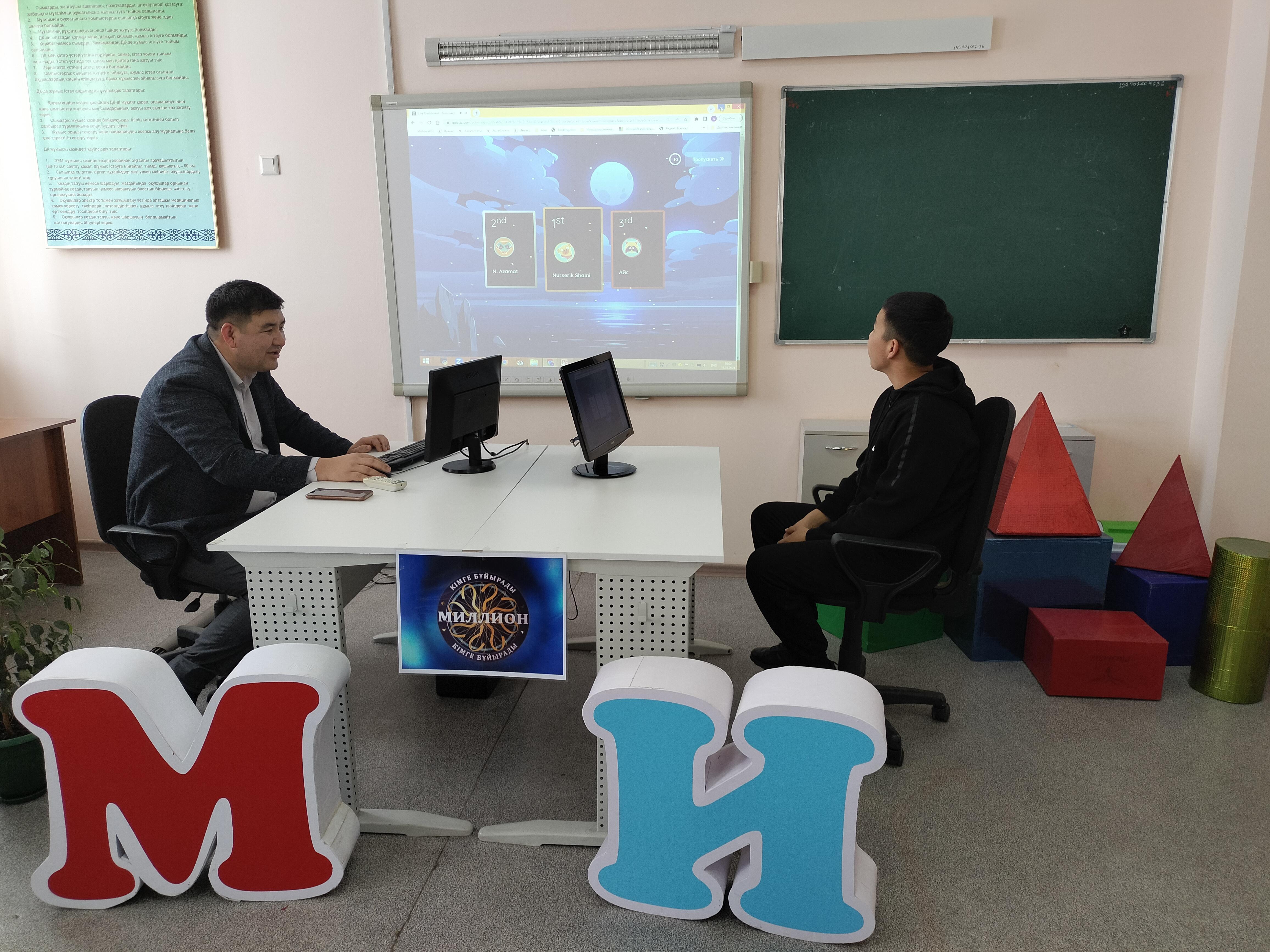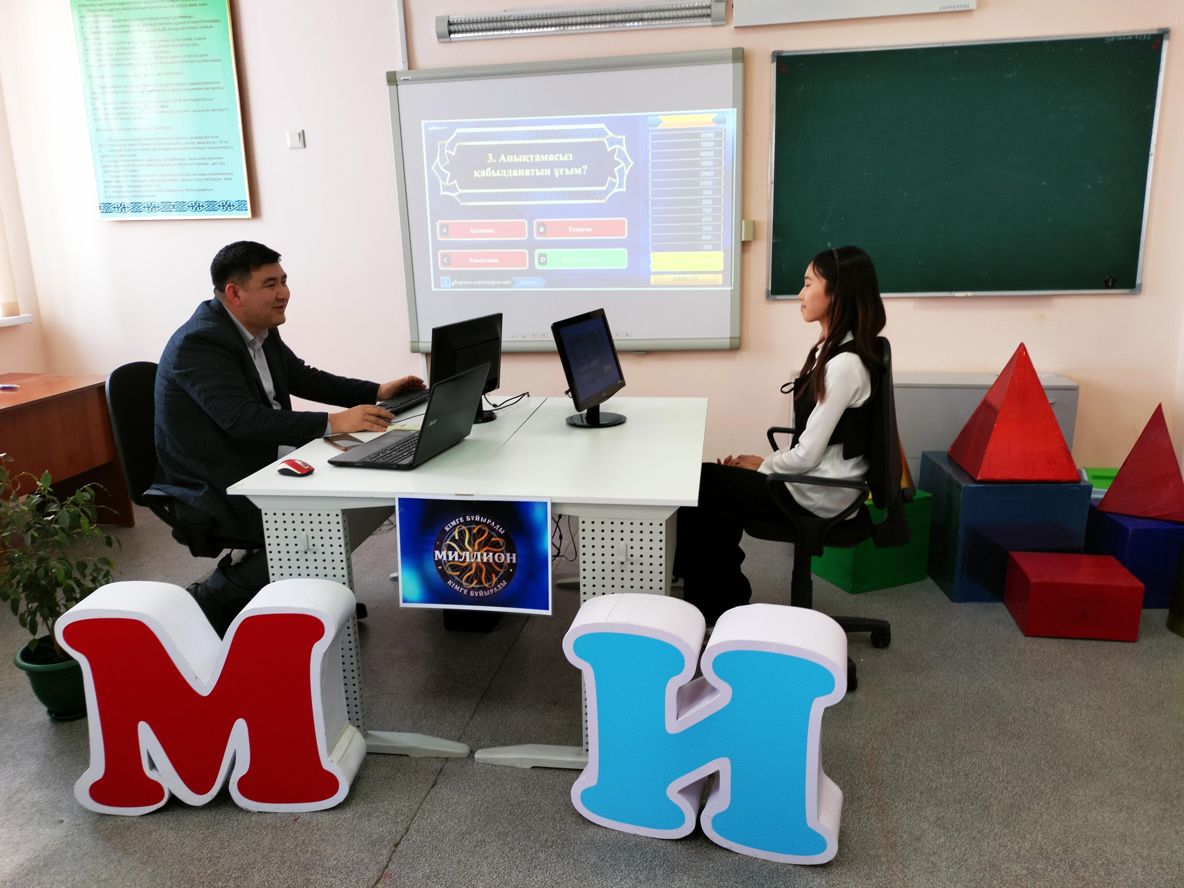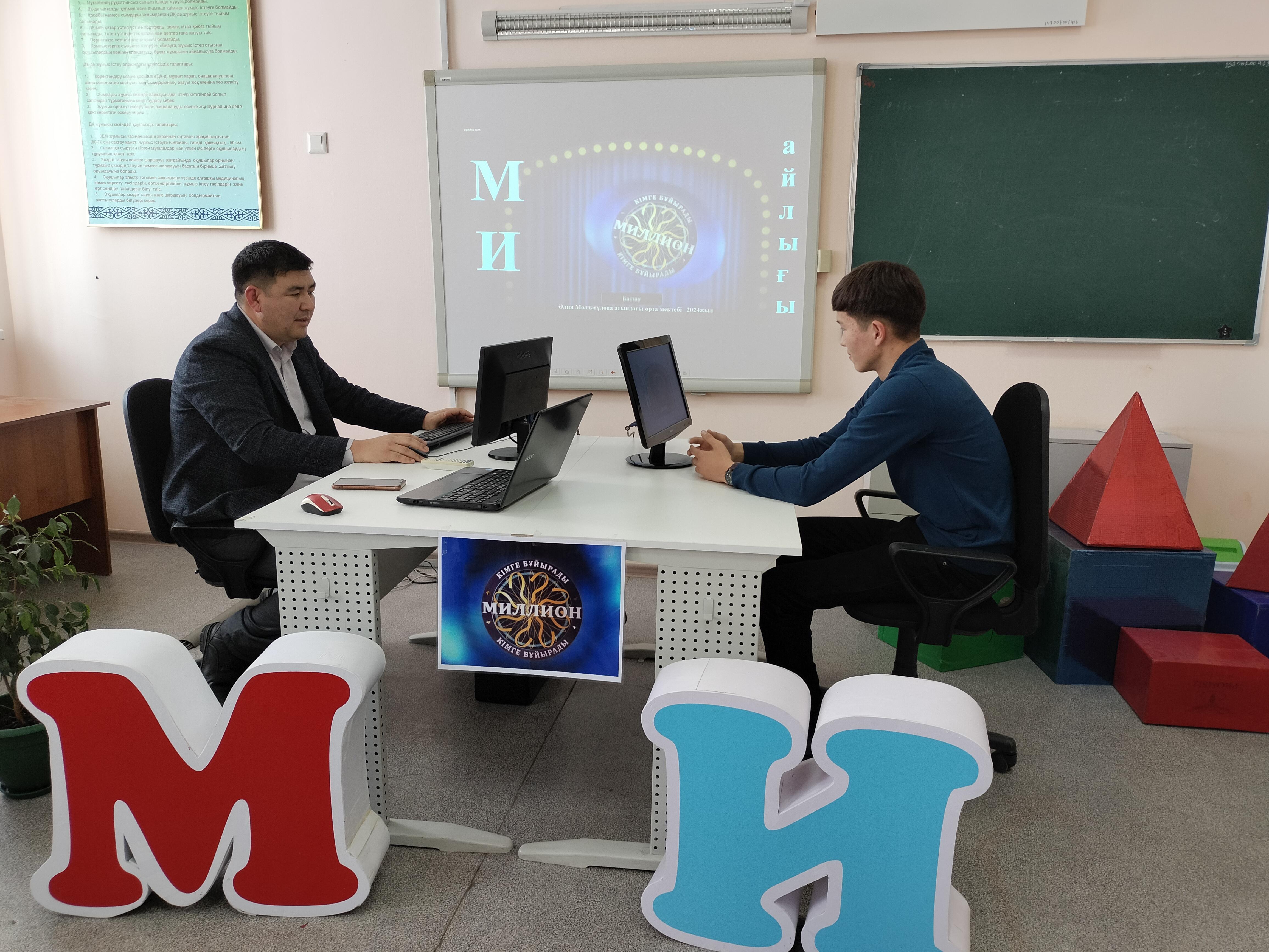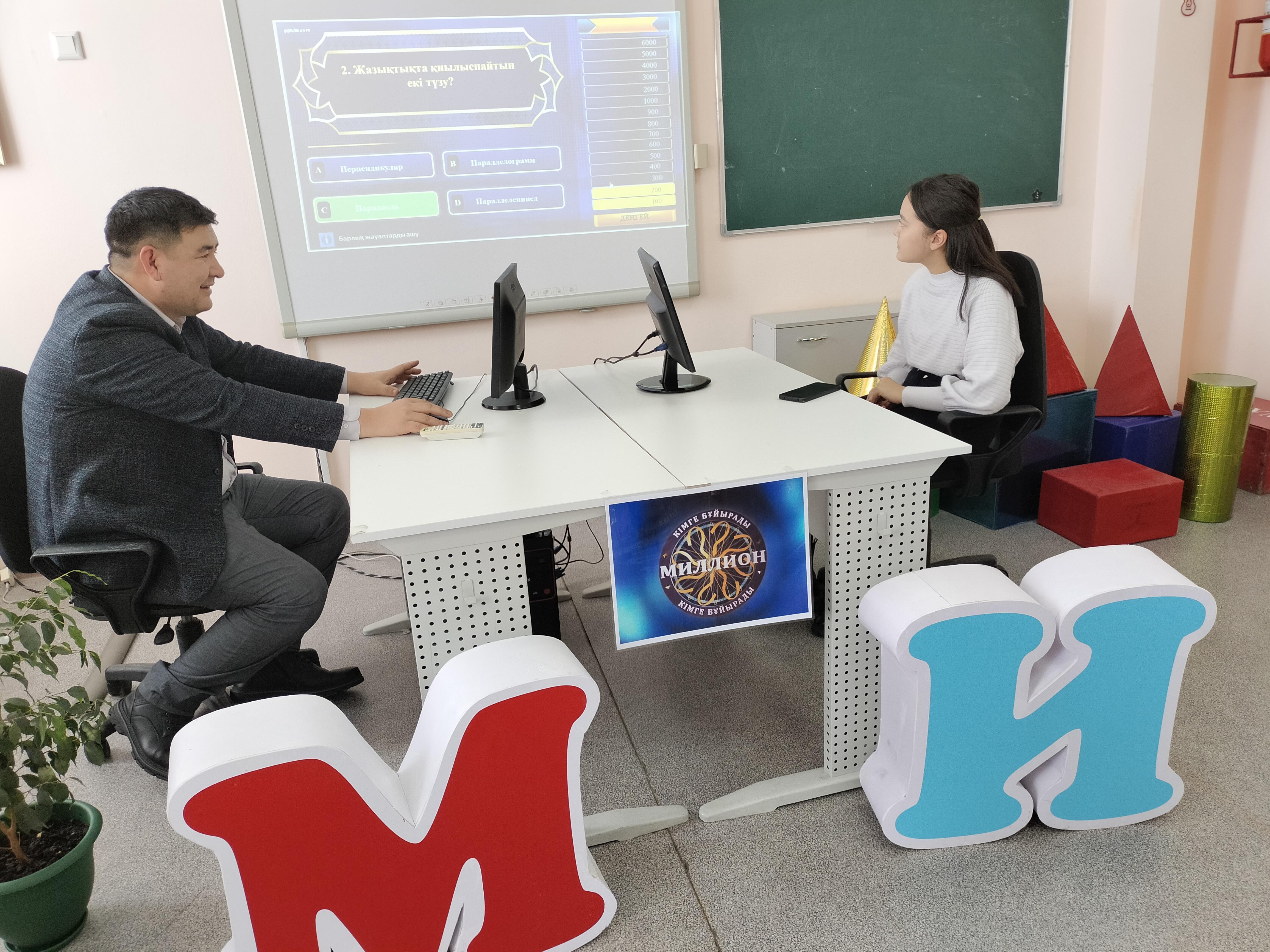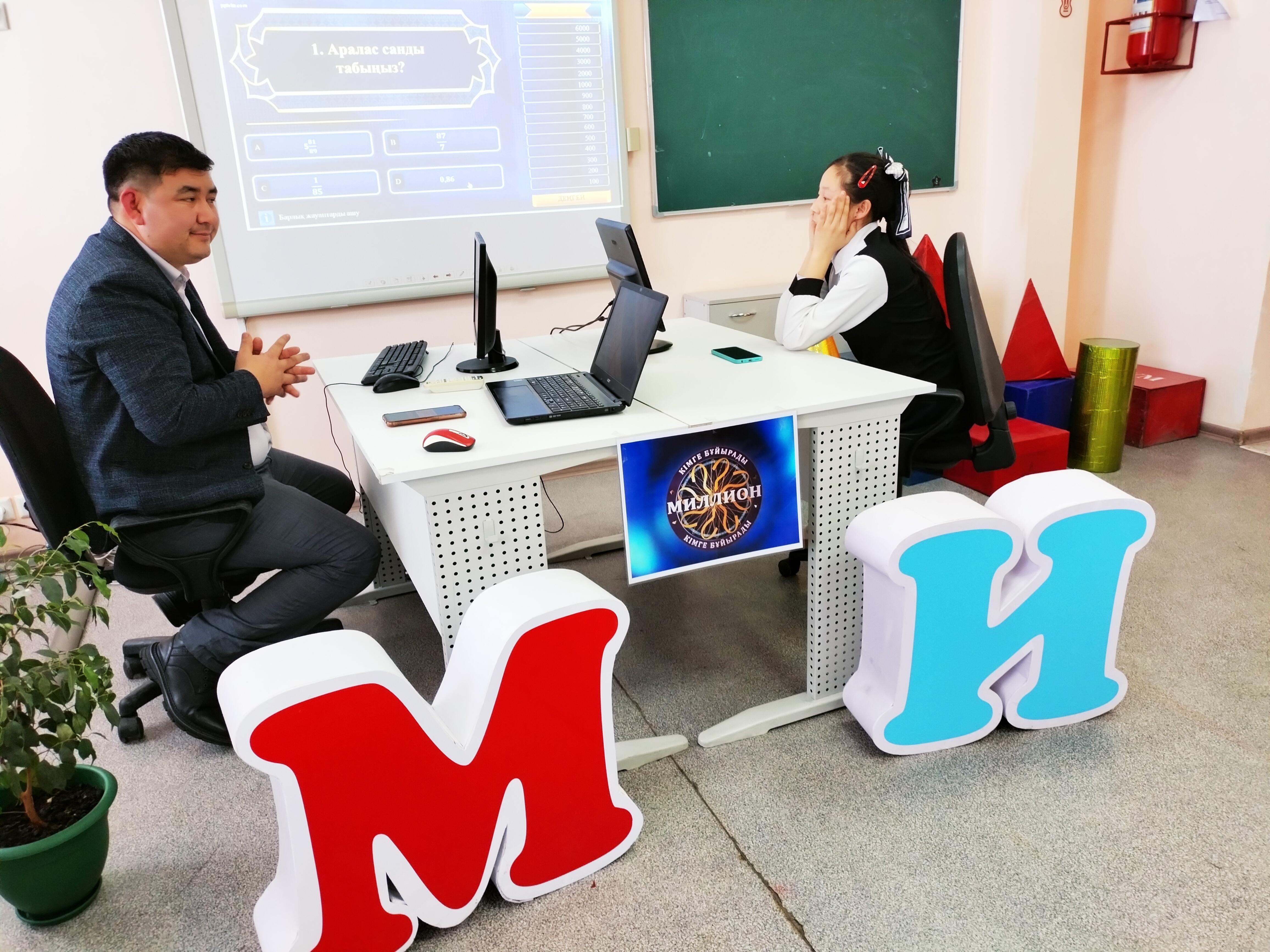 Әлия Молдағұлова атындағы орта мектебінде математика және информатика айлығы жоспарына сай оқушылардың пәнге қызығушылығын арттыру, ізденімпаздыққа, өз бетімен еңбектенуге тәрбиелеу, танымдық білімдерін арттыру мақсатында 7-11 сыныптар арасында математика пәні мұғалімі А. Жүнісбековтың ұйымдастыруымен «Миллион кімге бұйырады?» атты сыныптан тыс интеллектуалды ойын өткізілді.