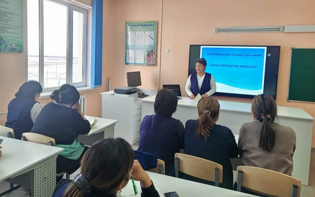 Әлия Молдағұлова атындағы орта мектебінде «Біртұтас тәрбие бағдарламасы» аясында жылдық жоспарға сәйкес 16 қаңтар күні сынып жетекшілер отырысының жиналысы болып өтті. Жиналысты директордың тәрбие ісі жөніндегі орынбасары Ш. С. Илкибаева жүргізіп, алдағы уақыттағы атқарылатын іс-шара жоспарымен таныстырып, сынып жетекшілер өз ойларымен бөлісіп, пікір алмасты.#Біртұтас_тәрбие