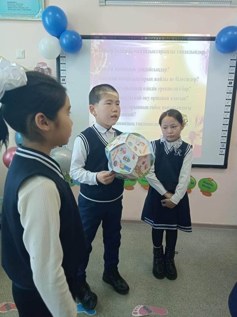 Әлия Молдағұлова атындағы орта мектебінің 4 сынып оқушыларымен сынып жетекшісі Камшат Нұрмағанбетова, кәсіби бағдар беруші Карлыгаш Нурманова кәсіби бағдар бойынша "Мамандығым - мақтанышым" тақырыбында сынып сағатын өткізді. Оқушылар мамандық туралы көптеген мәлімет алып, мамандық түрлерімен танысты. Мақсаты: оқушыларды белгілі бір кәсіпке бейімдеу, қызығушылығын арттыру.