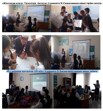 Тәуелсіздік күні атқарылған іс-шаралар » "Әлия Молдағұлова атындағы орта мектебі" КММ