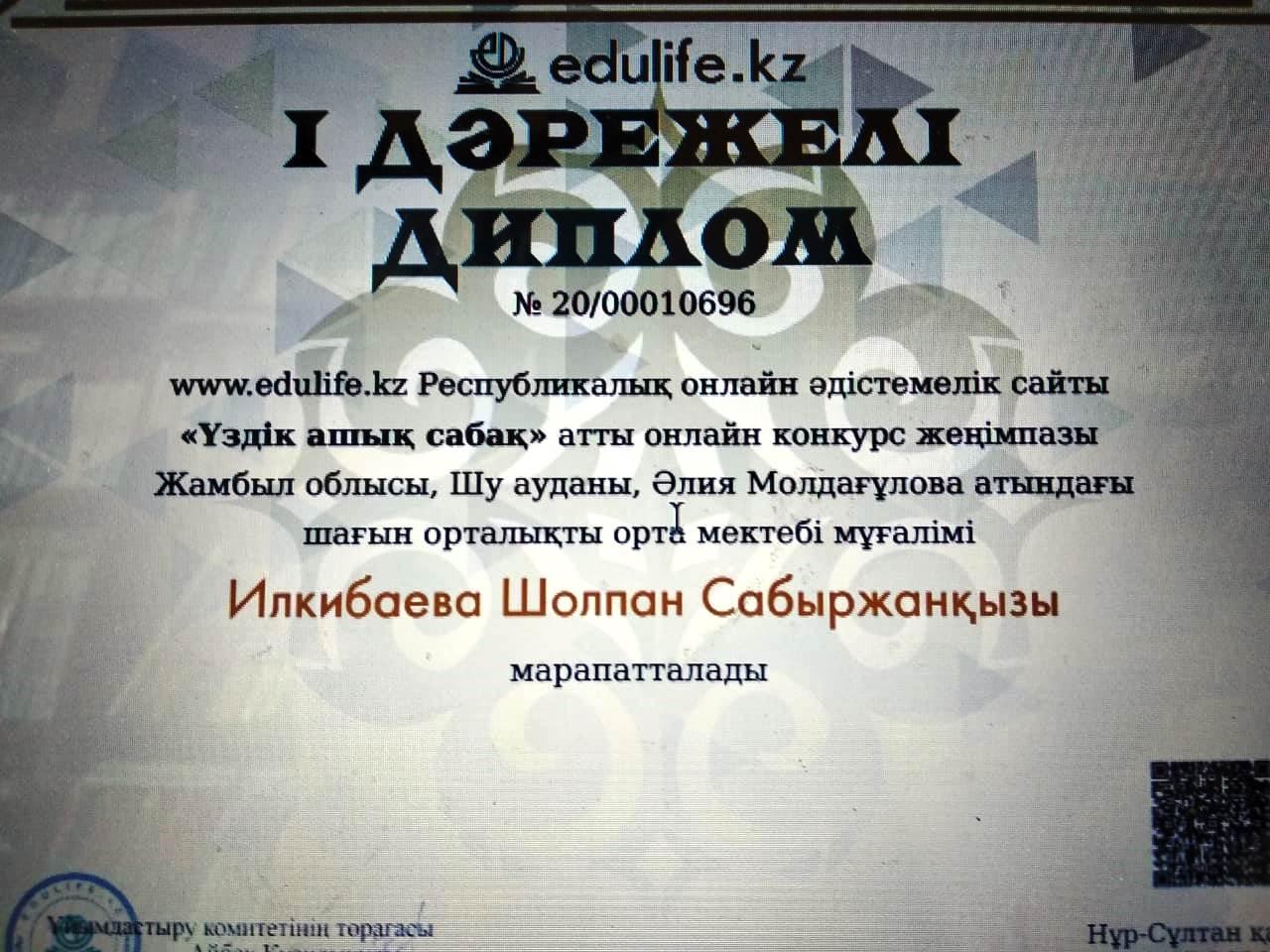 13 қараша 2020 0 1 2 3 4 5 Мұғалім жетістігі Әлия Молдағұлова атындағы шағын орталықты орта мектебінің бастауыш сынып мұғалімі Ш.Илкибаеваның жетістіктері