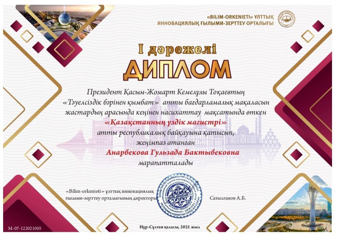 Ізгі құрметпен: ұстаздарың Диханбаева Замзагул Алдибаевна