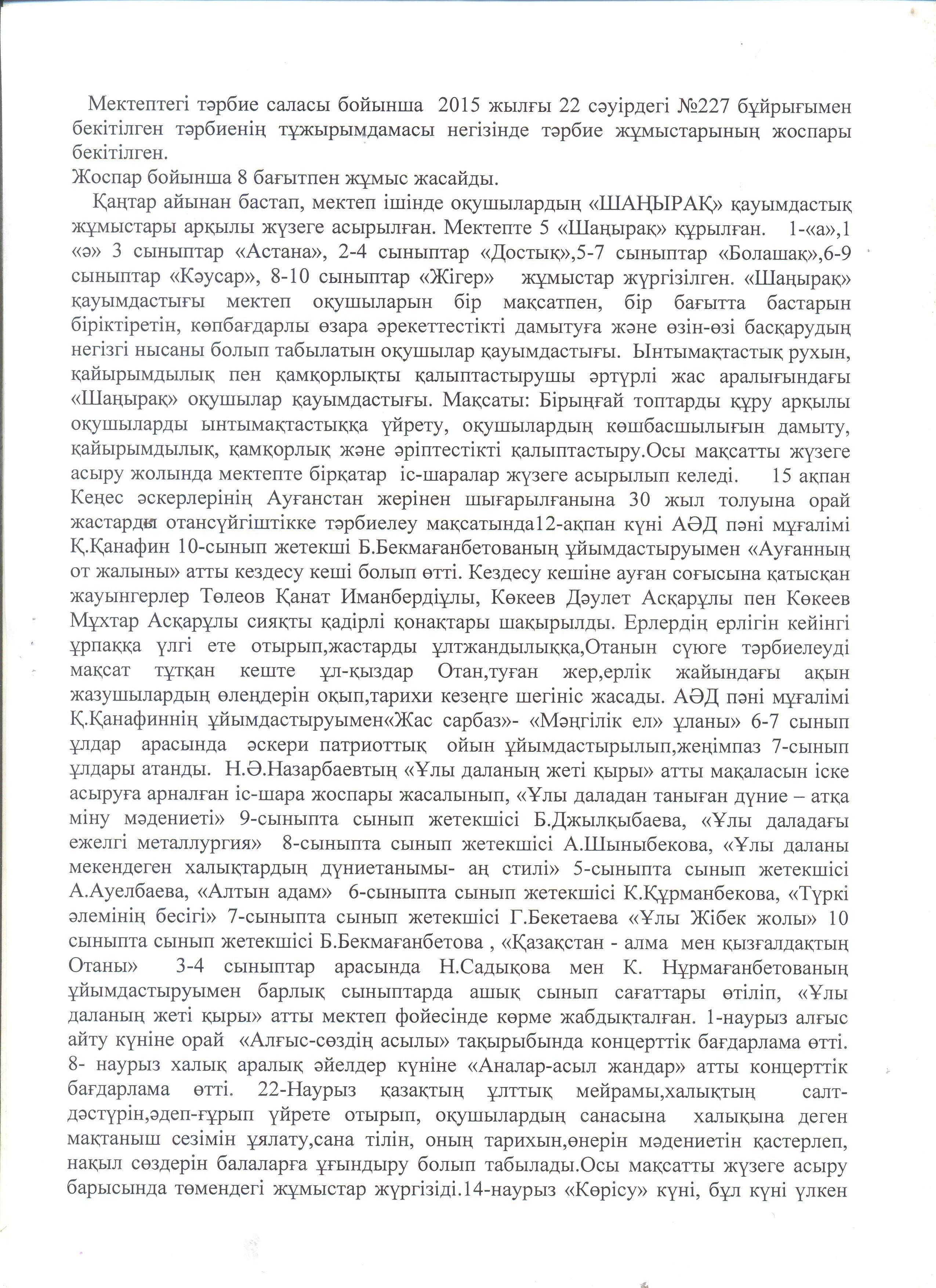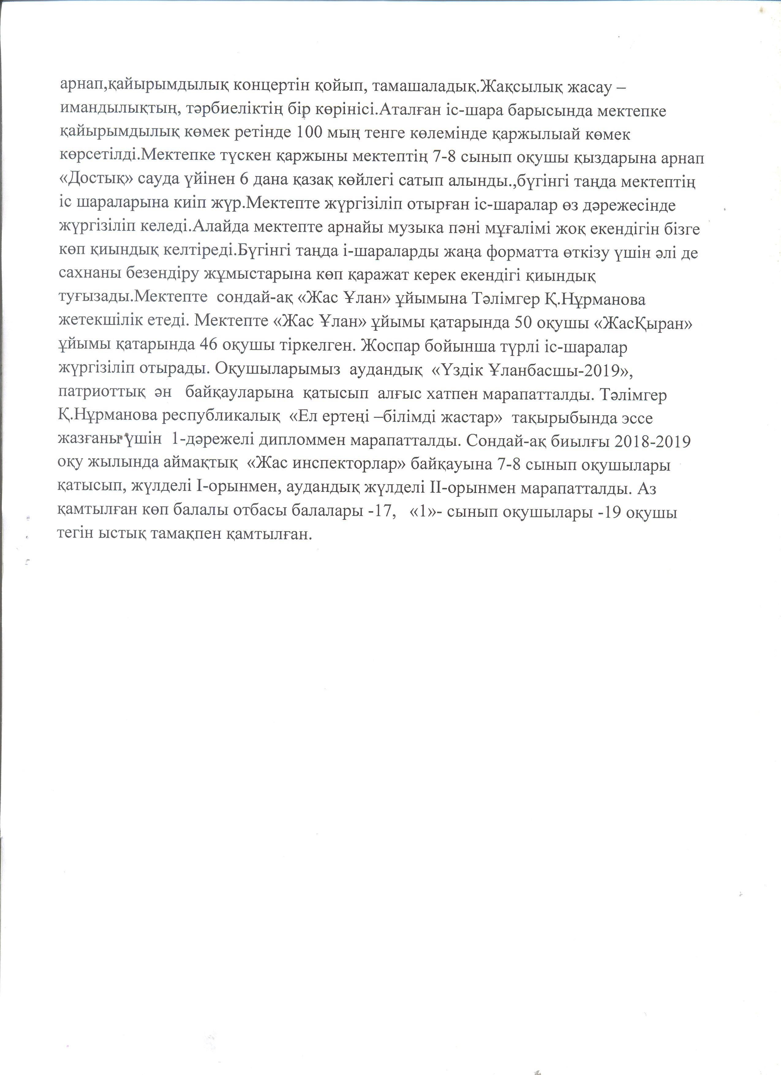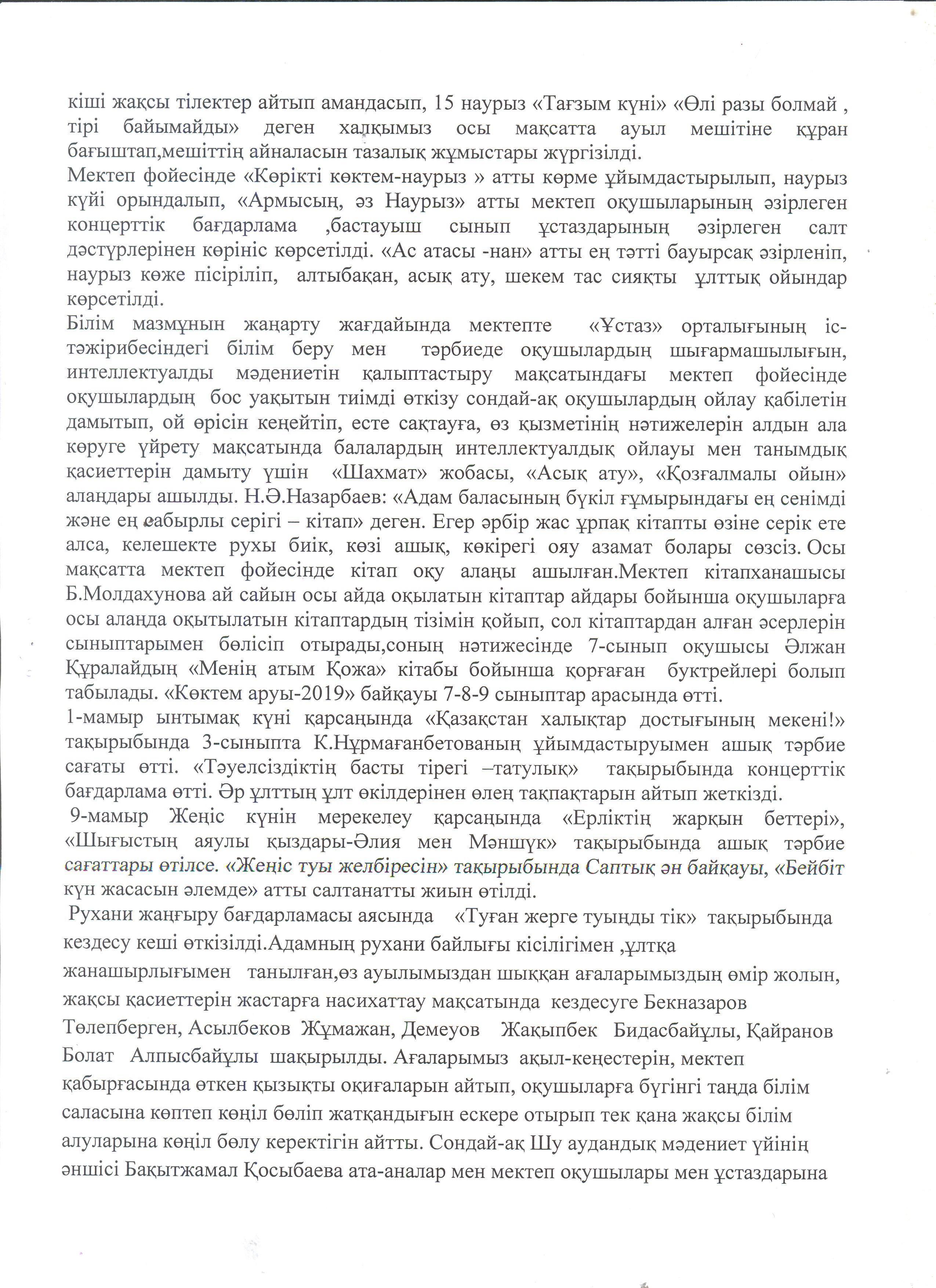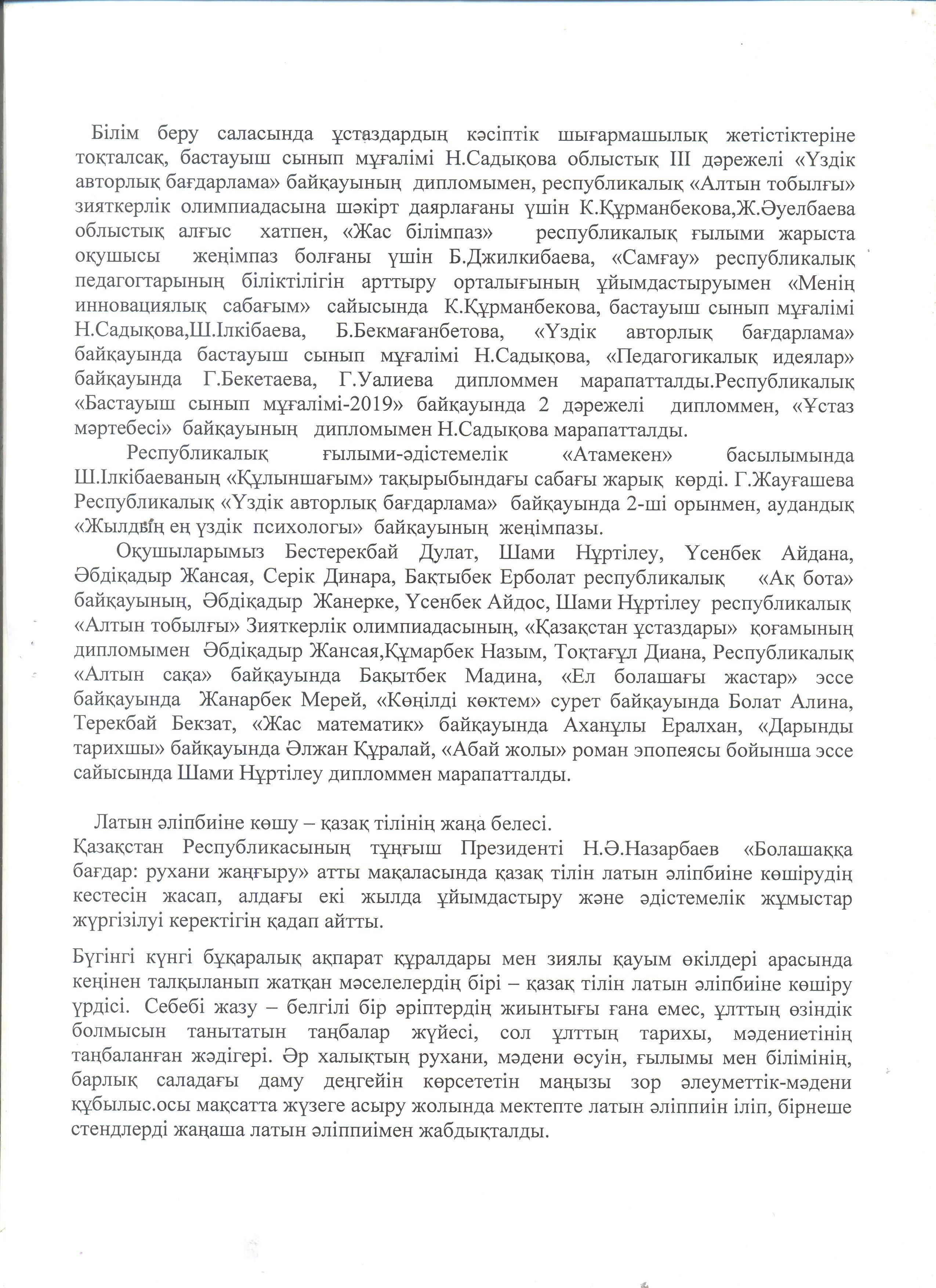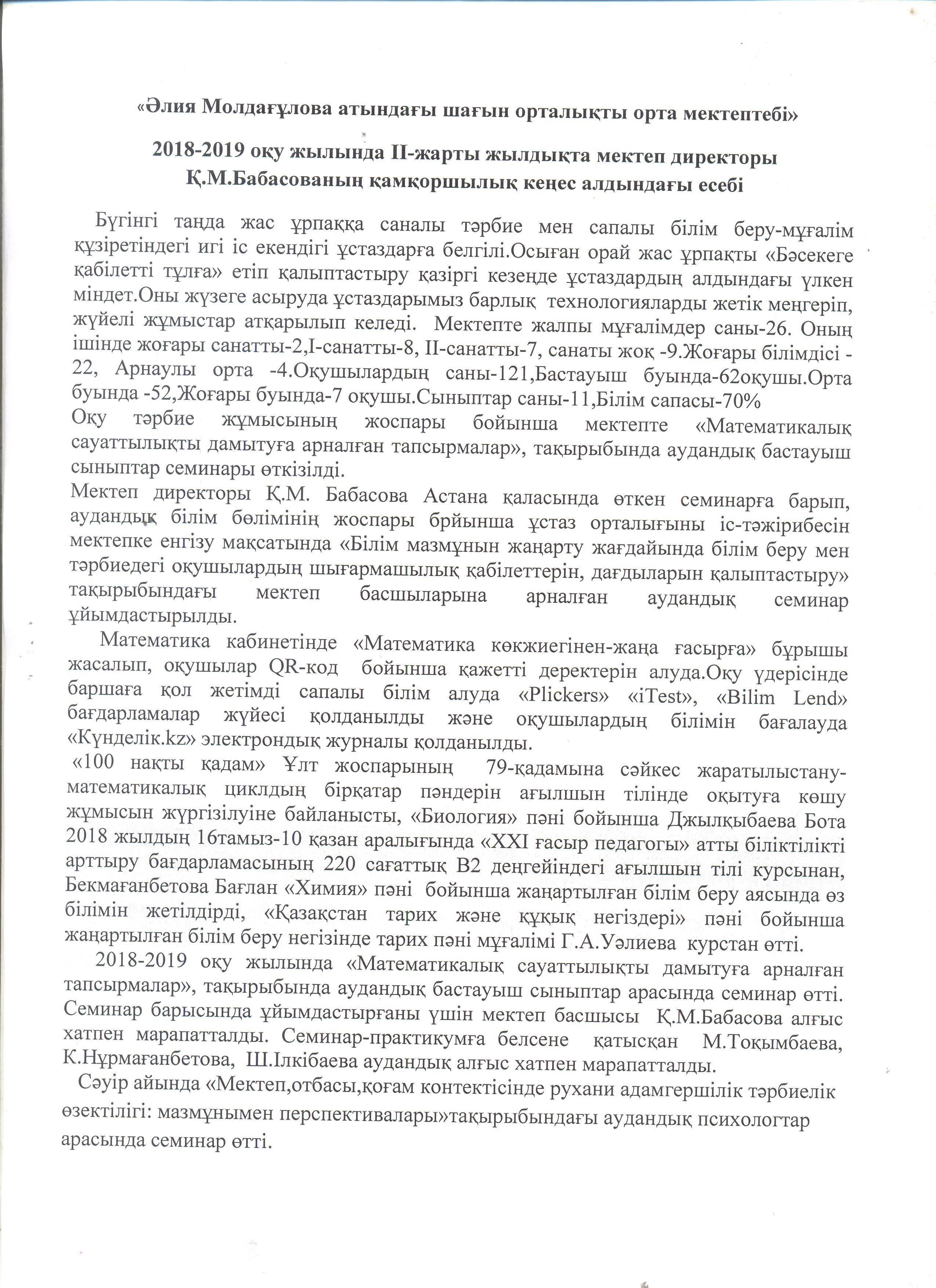 Мектеп директорының есебі » "Әлия Молдағұлова атындағы орта мектебі" КММ