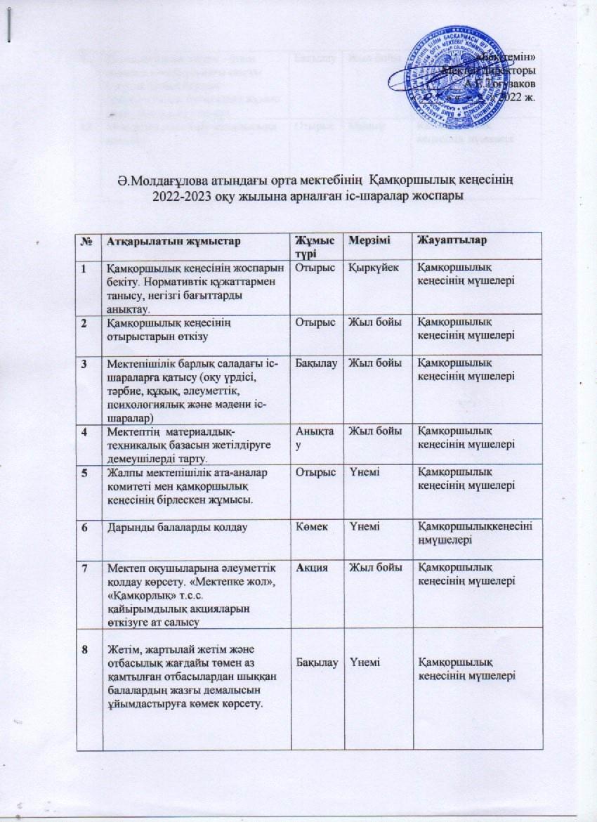 2022-2023 оқу жылына арналған жоспар » "Әлия Молдағұлова атындағы орта мектебі" КММ