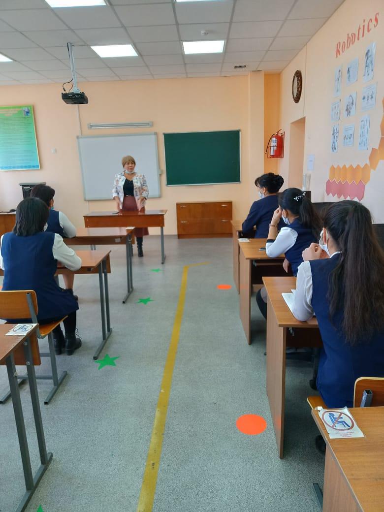 2015 – 2020 жылдарға арналған сыбайлас жемқорлыққа қарсы стратегиясын іске асыру жөніндегі 2018 – 2020 жылдарға арналған іс – шаралар жоспарының 29 – тармағын орындау мақсатында, COVID – 19 короновирустық инфекциясының таралуы мен эпидемиологиялық жағдайға байланысты білім беру ұйымдарын қамтамасыз етуге бөлінген қаржыны жұмсау бойынша есеп беру екендігін айтып кетті.Шу ауданы әкімдігінің білім бөлімі тарапынан мектебімізге аудандық білім бөлімінен оқушылар мен мектеп қызметкерлеріне арналған антисептигі бар санитайзерлер -102 дана х 5280 теңге = 538,560 теңге,ковриг – 4 дана = 9850 теңге, кварц 2 дана х30000 теңге = 60000 теңге,тепловизор 2 дана х 20000 теңге = 40000 теңге бөлініп,мектепке әкелінді.Сондай – ақ мектебімізге аз қамтылған,көпбалалы отбасынан шыққан оқушыларға 10 дана планшет х 82000 теңге = 820000 теңге, 7 дана моноблок х 28500 = 199000 теңгеге берілгендігін айтып кетті. Мектеп директоры жиналыс барысында короновирустық инфекциясының таралу қаупінің алдын алу бойынша санитарлық – дезинфекциялық талаптардың қатаң сақталуы қажет екендігіне де тоқталып,ата – аналарға түсіндіріп кетті.
